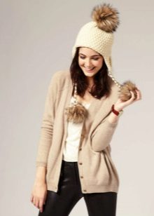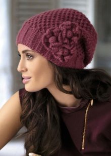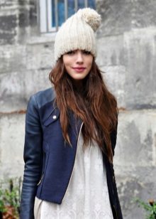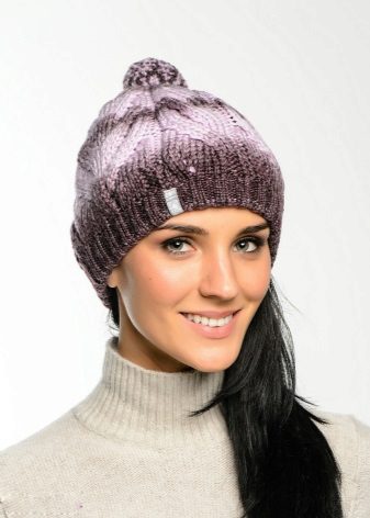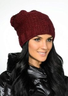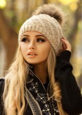 - Yarn - knitted hats, perhaps, one of the most common varieties, allowing to embody the most diverse and fantastic ideas (traditional wool or wool, mohair with silk, boucle and grass, yarn with sequins, calm monotonous or bleeding brain melange). Knitted hats: cap, large knit, knitted hat bomber, hat with lapel, hats with pom-poms of various sizes, turban, beanie, hat-tube, hat-scarf, hat-hat, hat with patterns (openwork, aran, ornament).