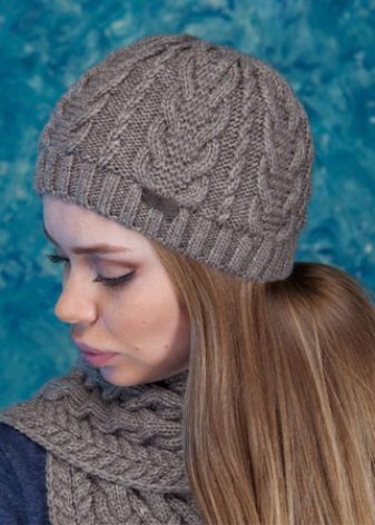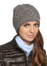 - It looks very beautiful knitting braids, as well as with a jacquard pattern. It is worth mentioning that these two techniques can be combined in one product. The melange hat has a similar technique, which, when using delicate shades, looks incredibly feminine.