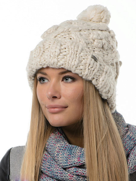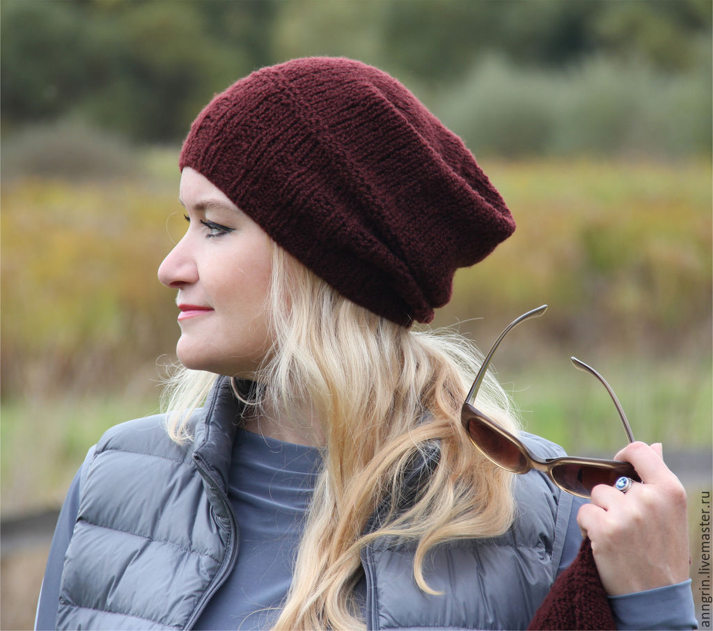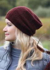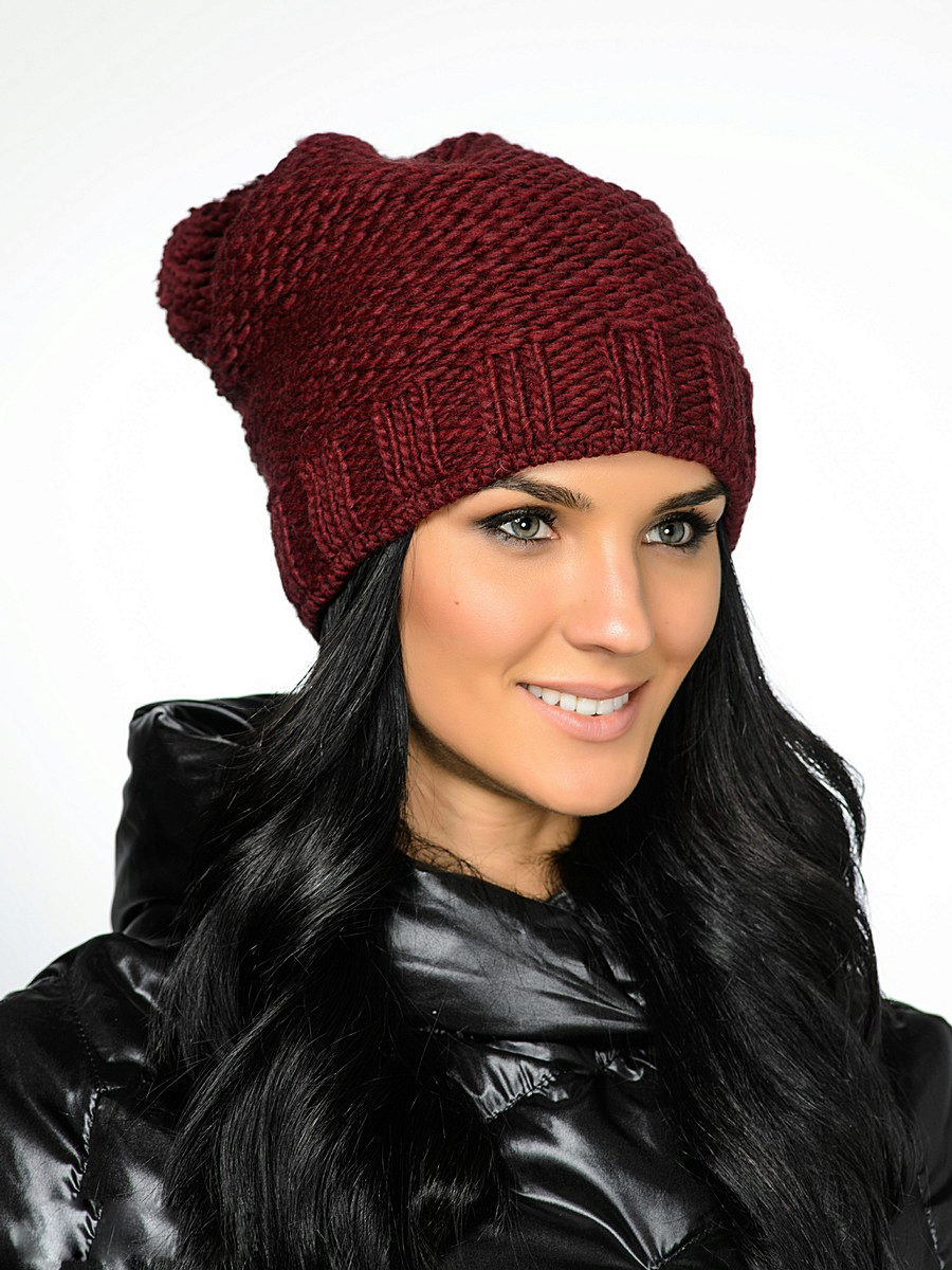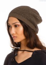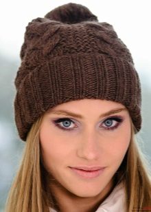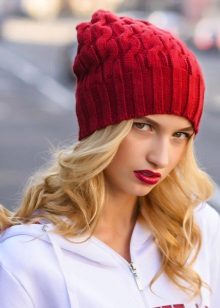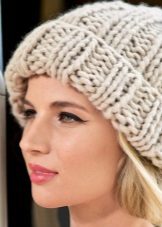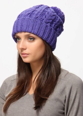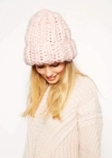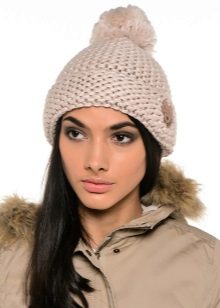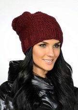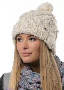 Popular models of large knitting of thick yarn, which look quite bulky. The product can be equipped with a bubo or strings.
