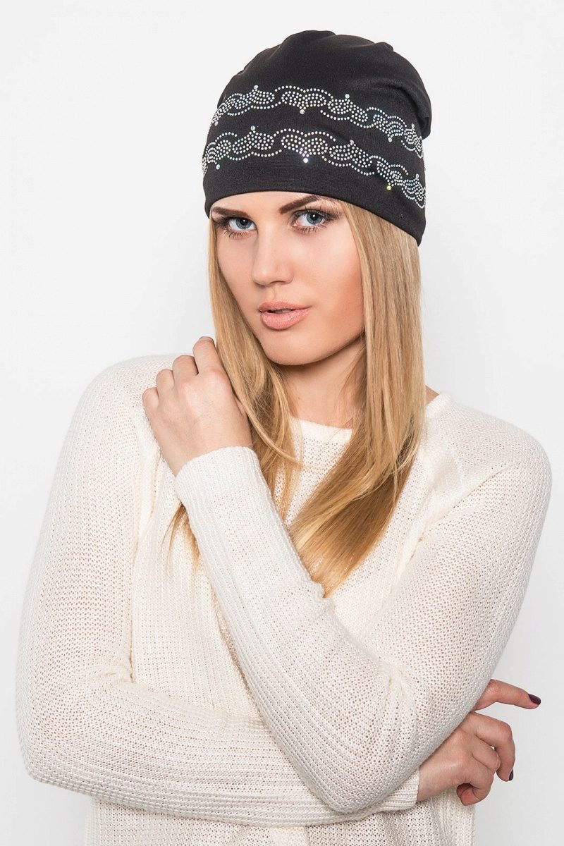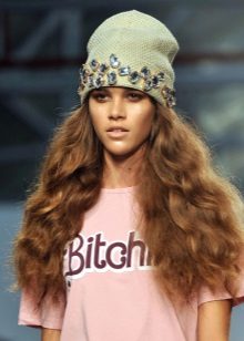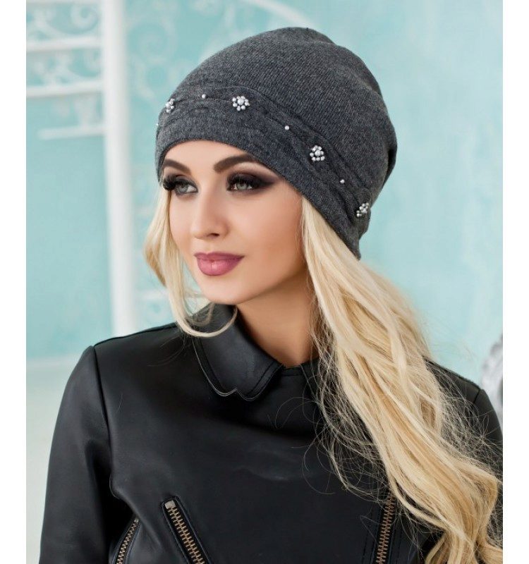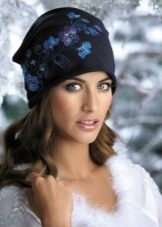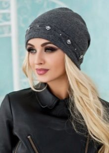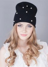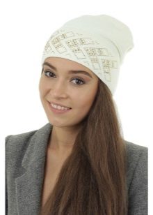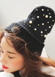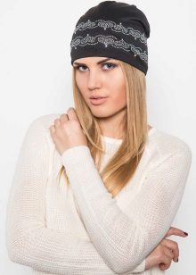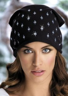 Caps, decorated with stones, often made of a single-color material. The stones are placed both on the light and on the black canvas, but the stones on a dark background look really gorgeous.