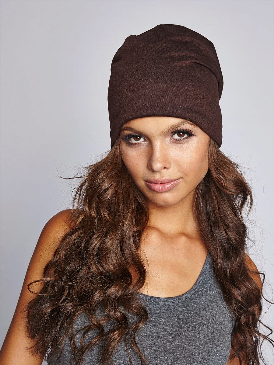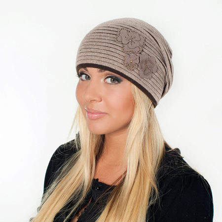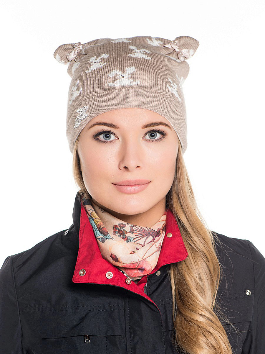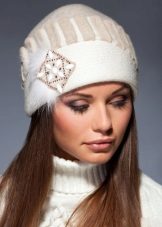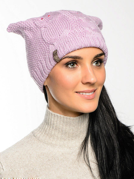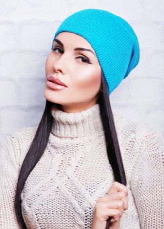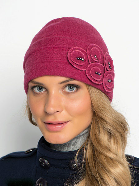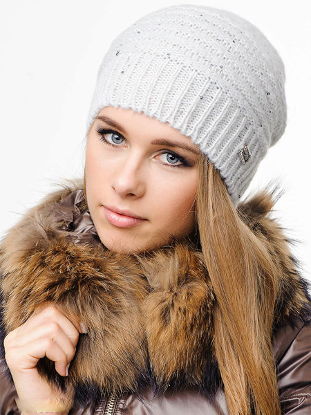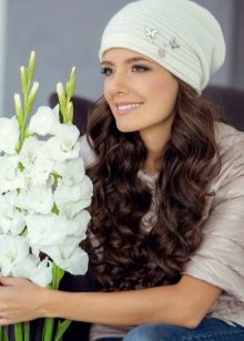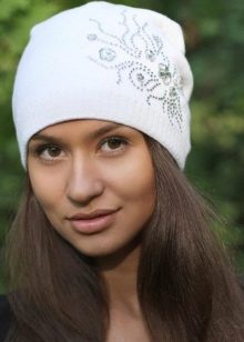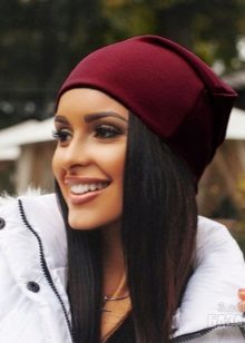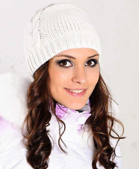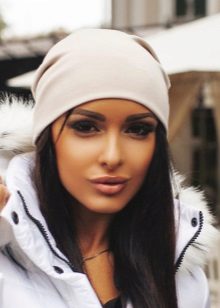 For girls with an elongated facial shape perfect caps covering the forehead, as well as voluminous caps or models with a lapel, which will help make the face wider, symmetrical and comely.