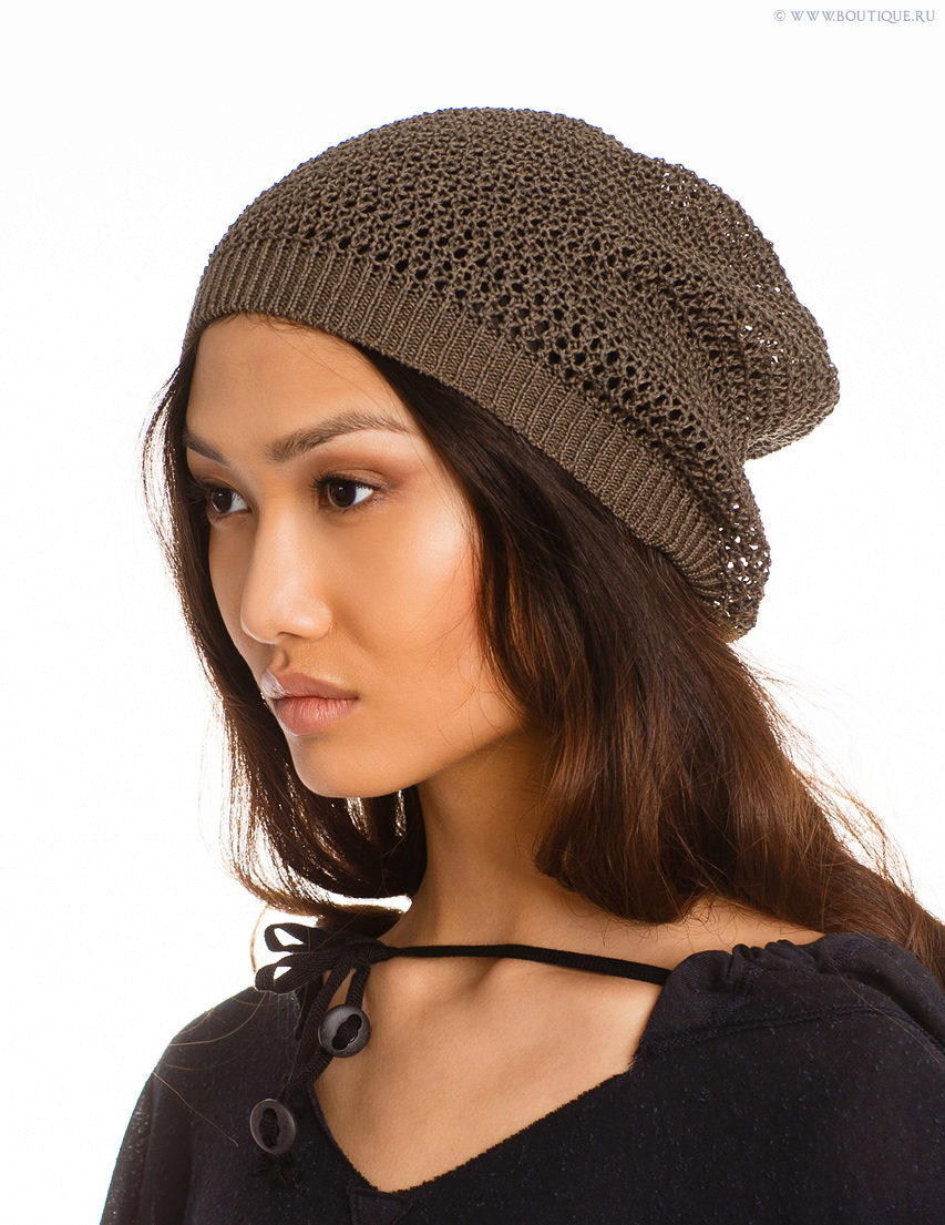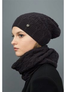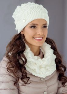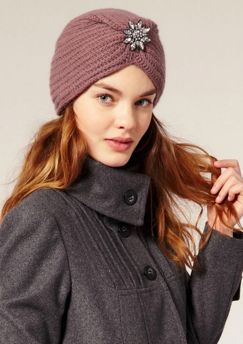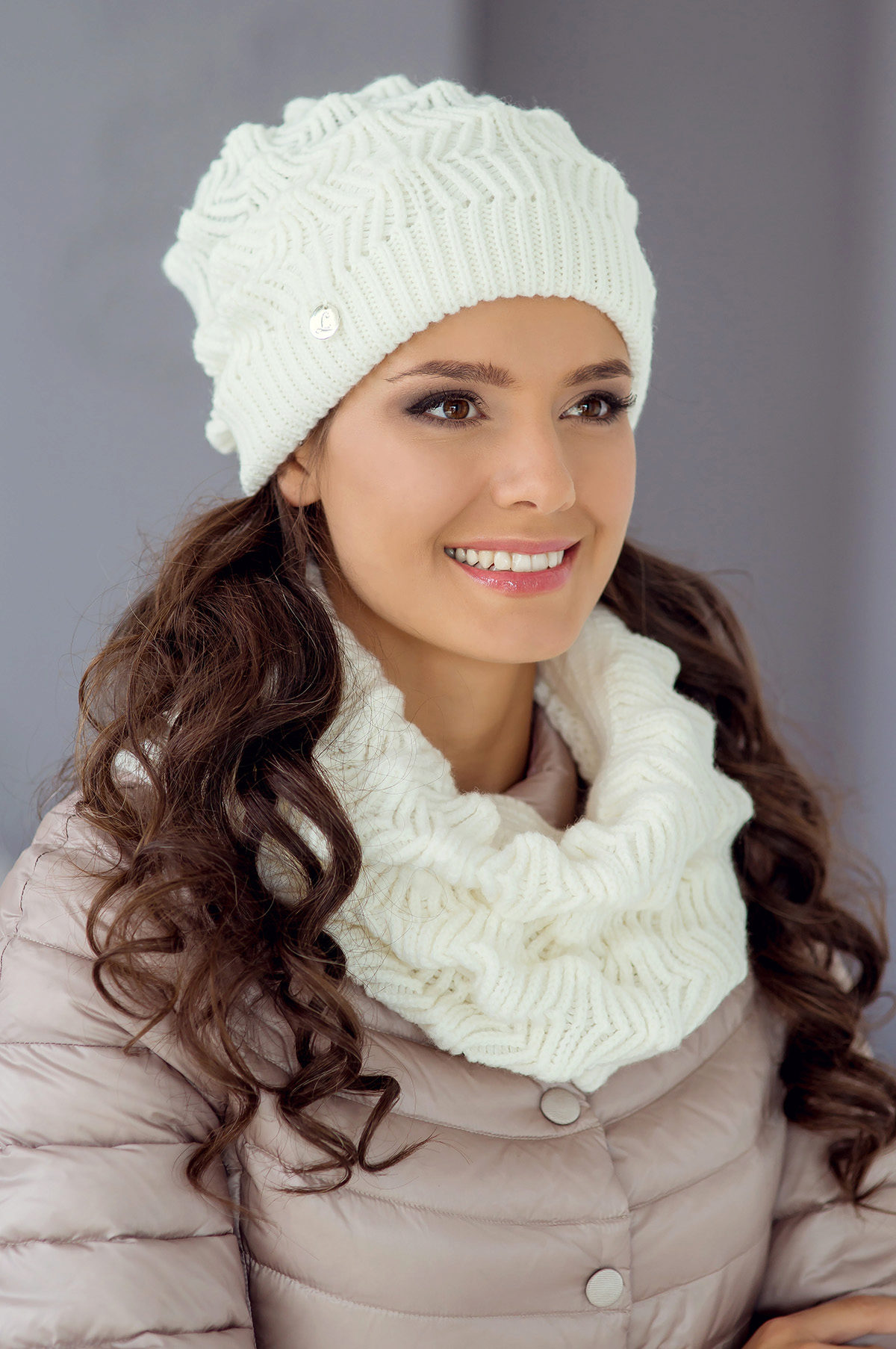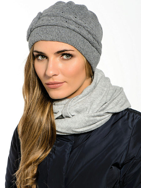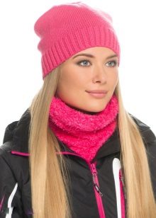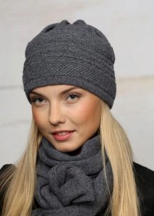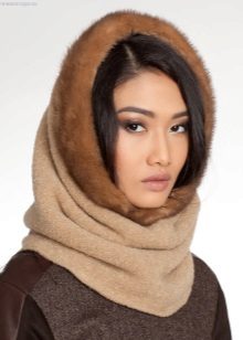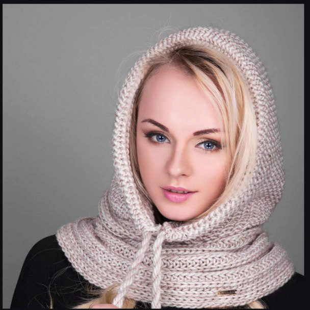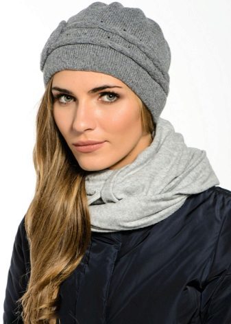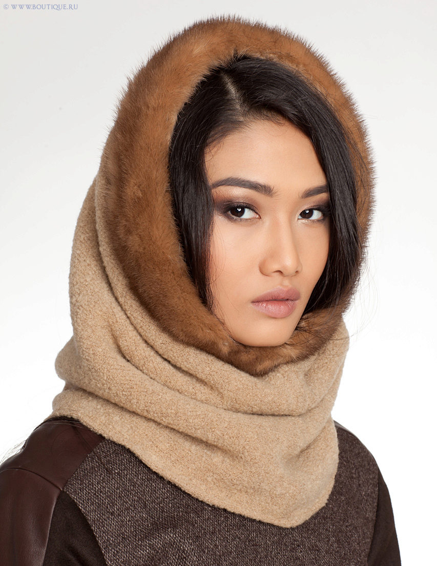 - The hat has an interesting cut that looks more like a scarf than a hat. A knitted or fur garment of ring-shaped form can be quietly thrown over the head, protecting also the neck from cold.