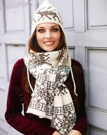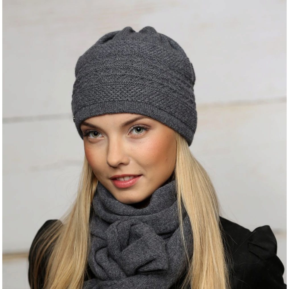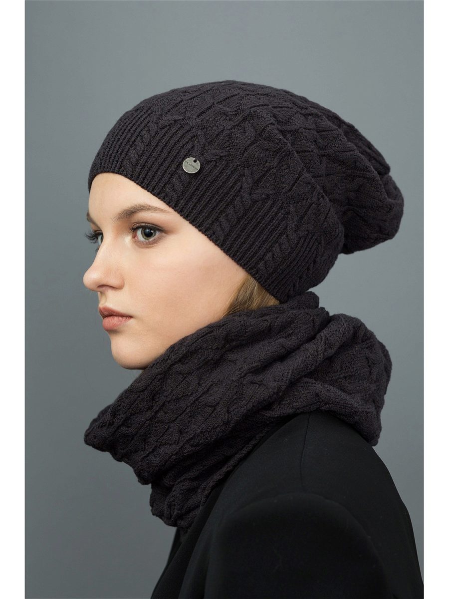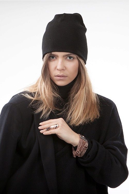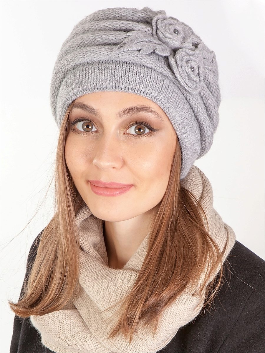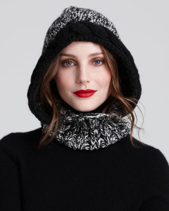 - The hat has an interesting cut that looks more like a scarf than a hat. A knitted or fur garment of ring-shaped form can be quietly thrown over the head, protecting also the neck from cold.