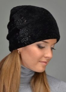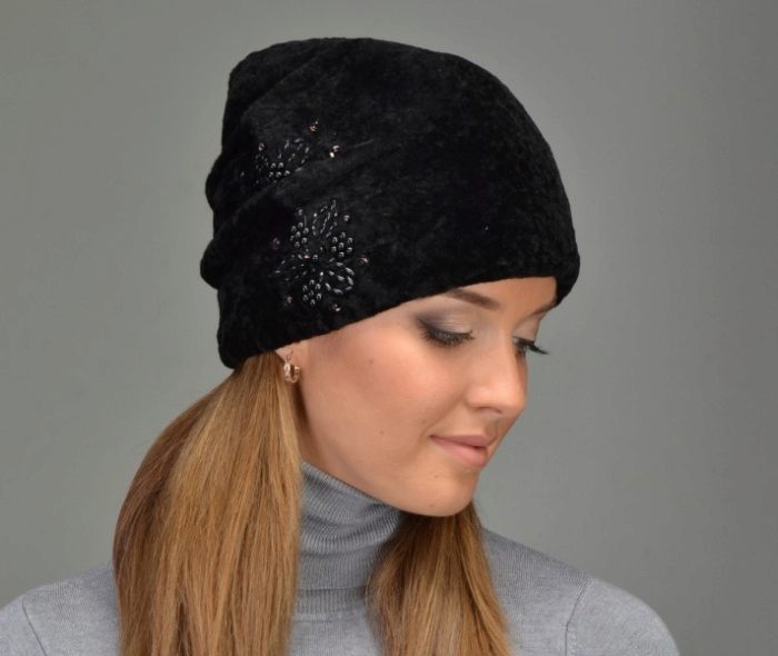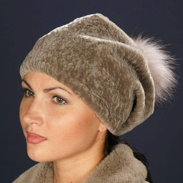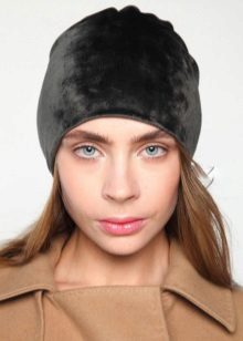 Caps are made not only from warm fur, but also from velor. Autumn models are especially good, but without a warm lining, such a thing is not at all suitable for winter. Very similar to the velor cap of suede and velvet.