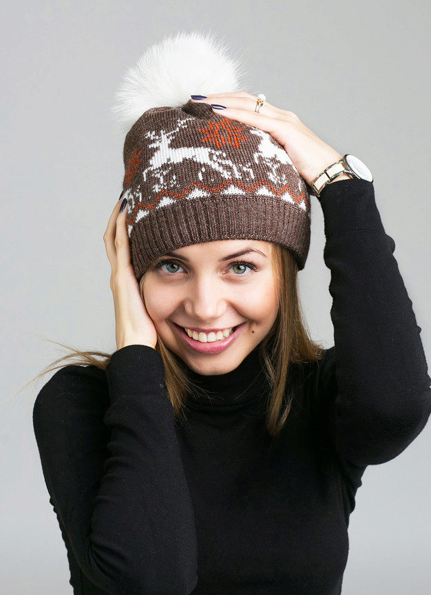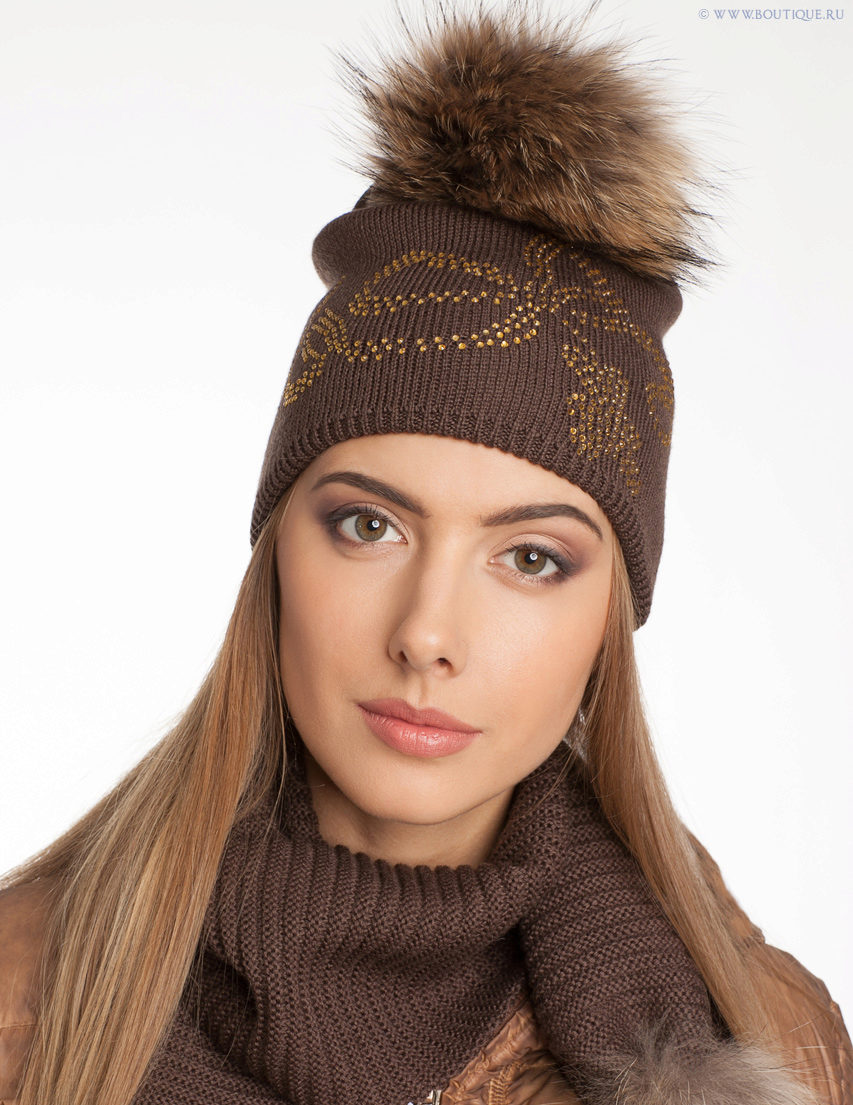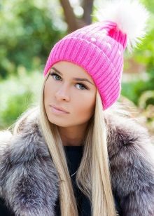 Feminine knitted models will suit any variant, while classic fur hats require only a fur top in the form of an elegant fur coat.