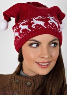 Caps can have a special, knitted ornament in the form of a Christmas pattern or some other image.