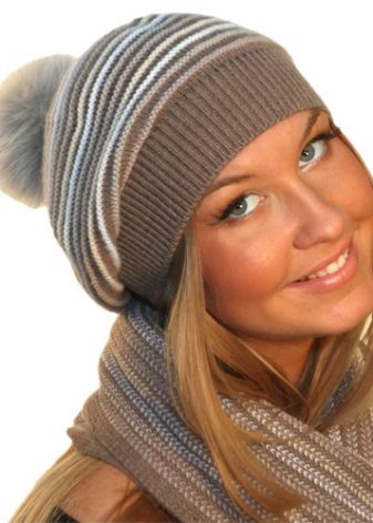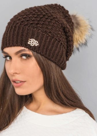 It is worth paying attention to the cap with a pompon, which has not left the leading position for several seasons. A pom-pom can be made of both wool yarn (this option is called a bubo), and of fur, artificial or natural.
