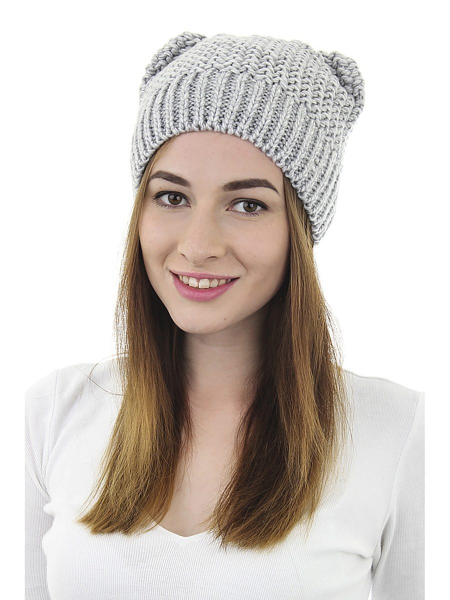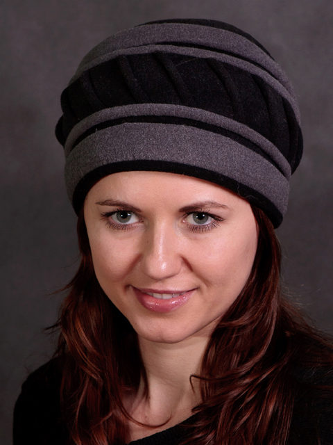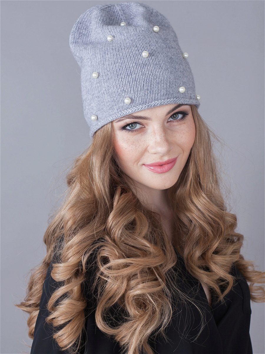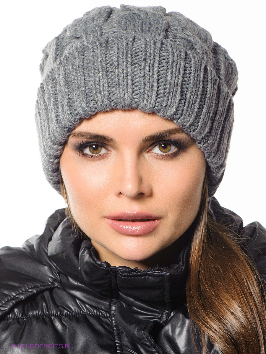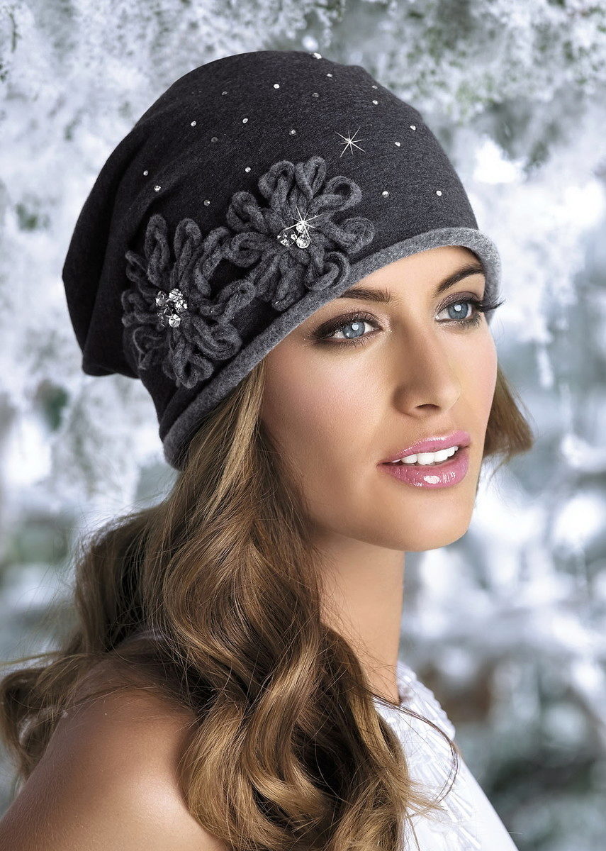 Blue and gray hats look good, which are especially beautifully emphasized by bright eyes of a similar shade.