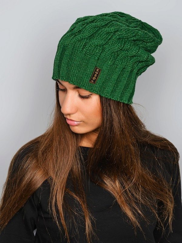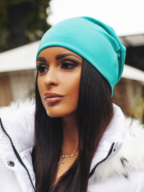 When choosing a green cap, it is better to concentrate on a dark green shade. Especially such a hat will suit the blue-eyed girls, since this tone will favorably set off the eye color.
