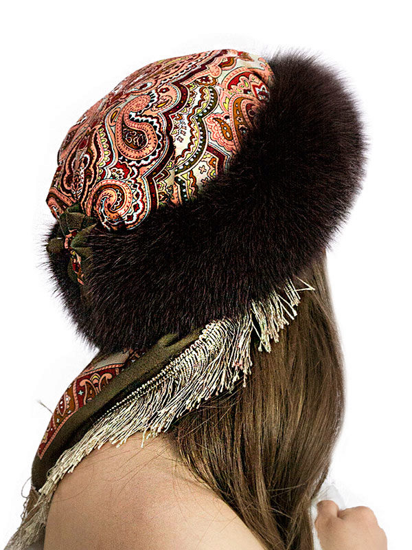 - The cap of the bandana is made in the form of a fur or wool triangular scarf, fastened at the back. The kerchief cap has a similar cut to the bandana model.
