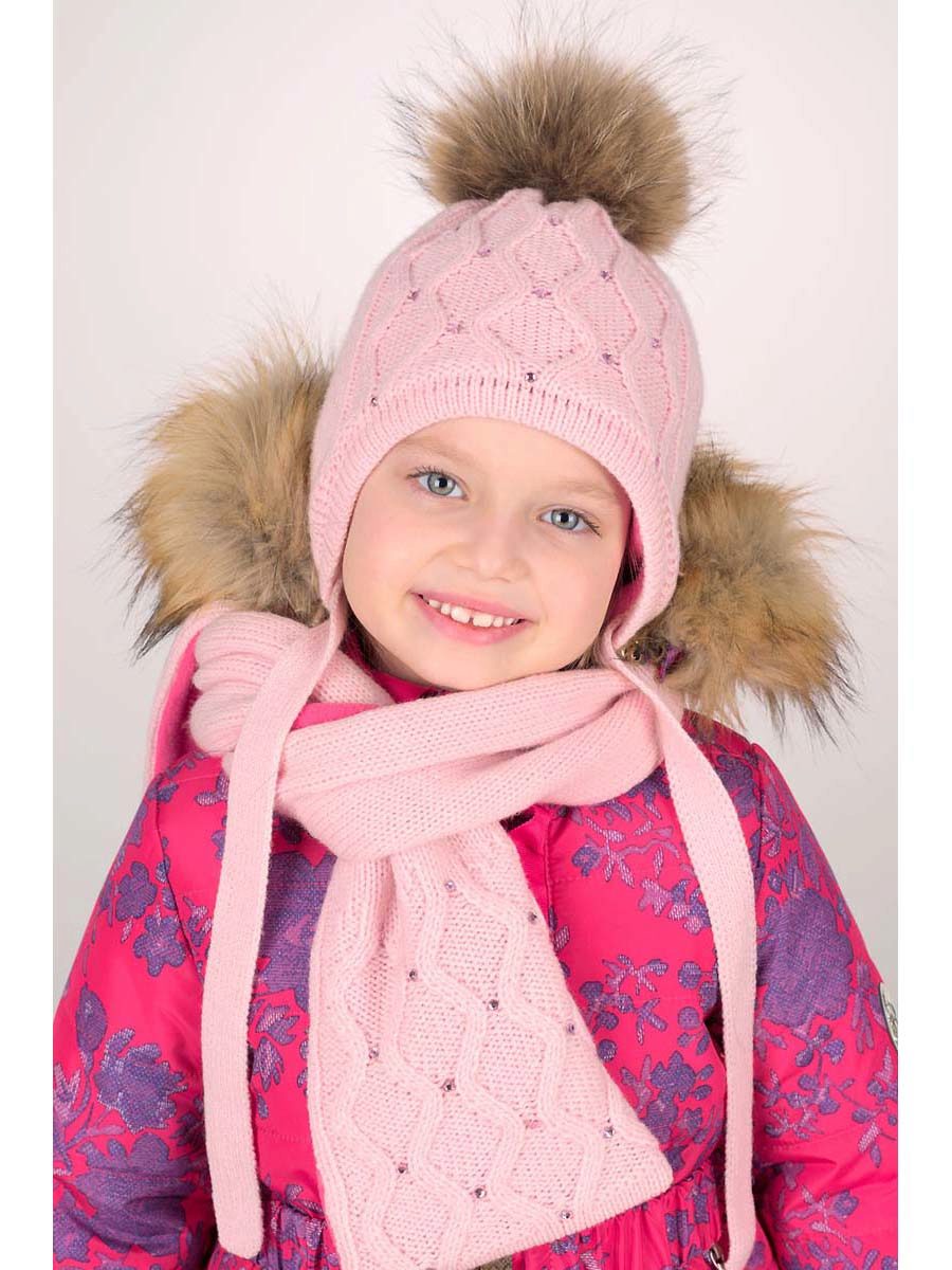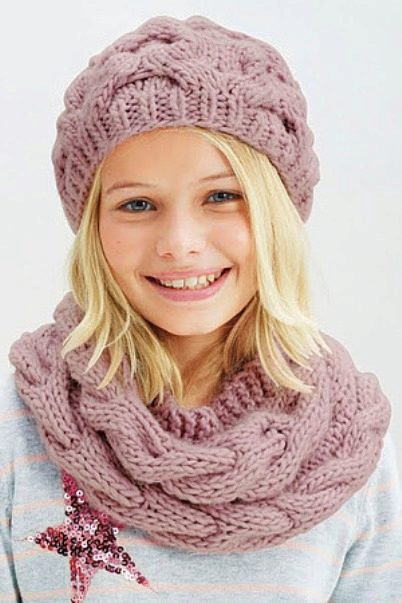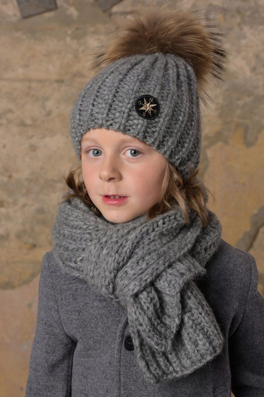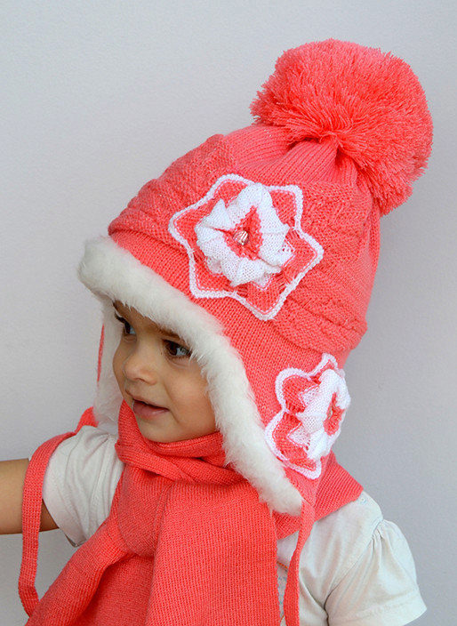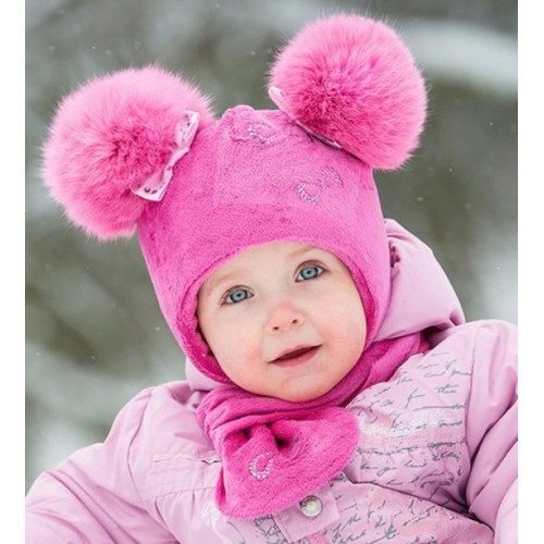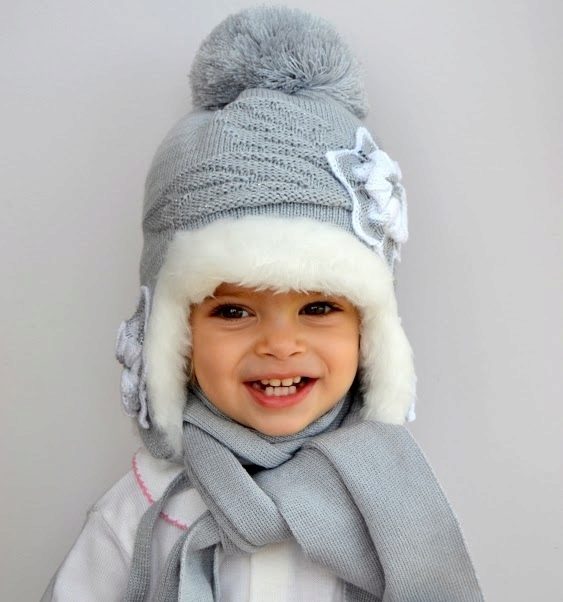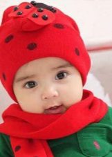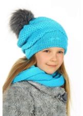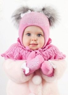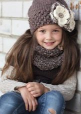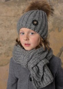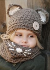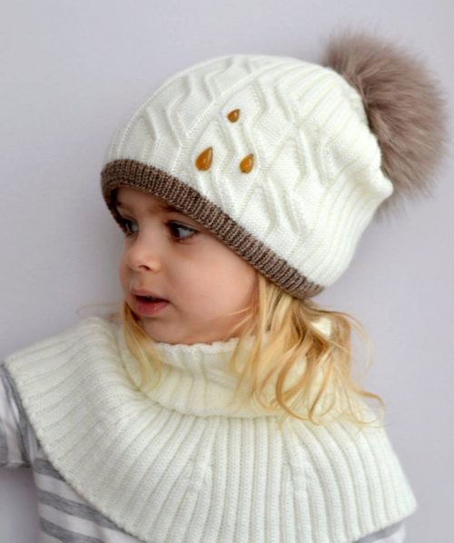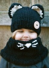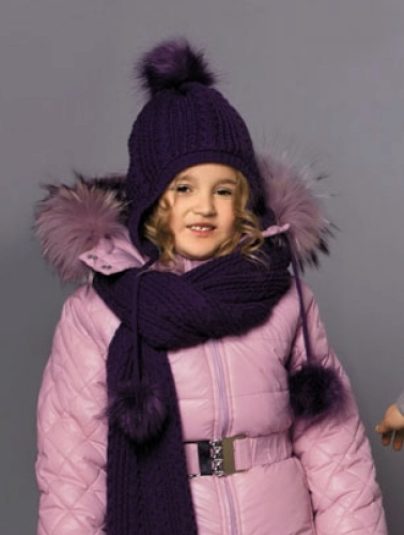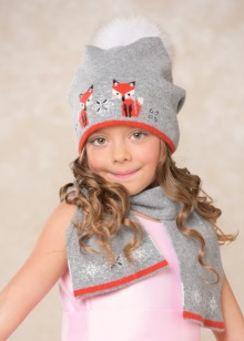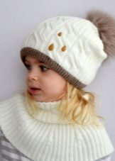 Caps complete with a scarf or snood were widely recognized not only among adults, but also among children. This is not only convenient, but also allows you to generally complement the image of the child in the same style and color scheme.