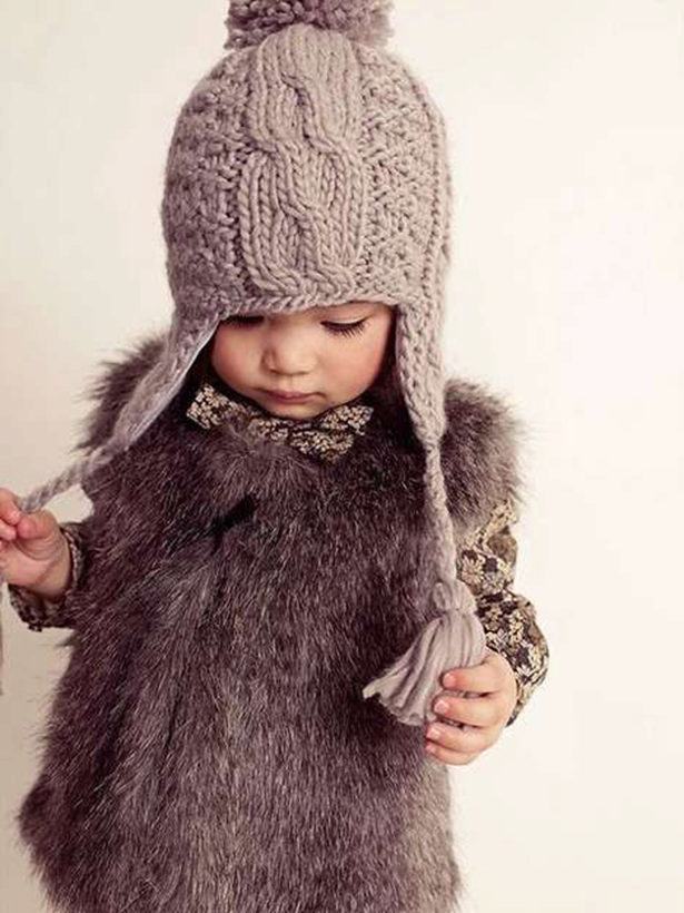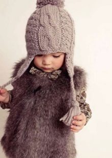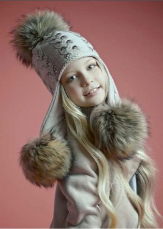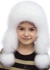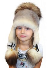 Fur hats for girls always remain relevant. Popular furs for making children's hats are rabbit, muton, arctic fox, mink, sheepskin.Earflaps with a lapel on the forehead of any fur, ears on ties are the classic model, which allows to protect the child's face as much as possible from the cold. Inside the cap there is a warm lining made of soft and practical fabric. Hats with fur caps from arctic foxes, foxes look spectacular and cozy.