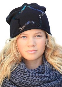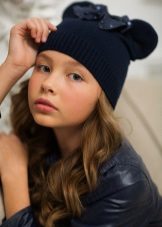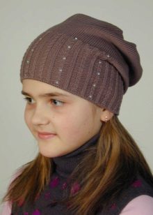 Teenage hats for winter are distinguished by more restrained décor, but they also use knitted ornaments (laces, flowers, leaves, ears, etc.), decorative buttons, buttons, rhinestones, sequins, stones, beads.