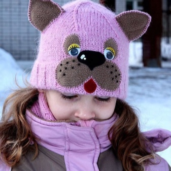 Children's winter hats for girls with decorative ears always look original, imitating the head of animals (panda, tiger cub, lion, cat, bear), decorative elements, giving the similarity with the characters of cartoons, children's movies or with images of cartoon characters. These hats will certainly please the children and they will be happy to wear them.
