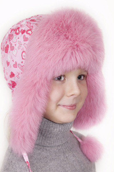 Classic ushanka is made in the combined form of materials. Bright pink kurtochnaya top caps with an unusually elegant pattern on the ears and trim white fur on the inside of the ears and on the visor-lapel gives this model a delicate image of childhood. Suitable for children from 7 years and older. This hat can be worn for several seasons. It is versatile in wearing and care, durable and comfortable.