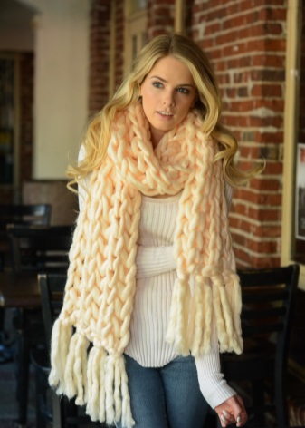 Today the pattern has many varieties, one more beautiful than the other. In creating the image of a significant role plays the design of the scarf. It can be either a simple cover with a knot or a loop, or elegant forms created from endless cords that can transform into a bolero or vest.