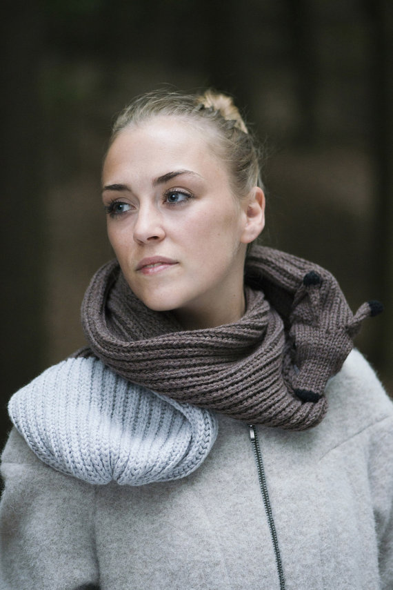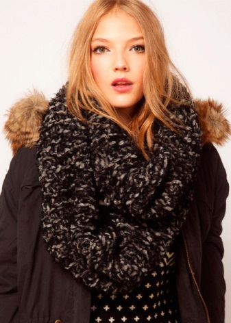 The scarf-collar fits snugly to the neck, keeping warm and protecting it from the weather. The accessory should be selected to match the main color of the clothes in accordance with the type of figure, hair and skin color. With a competent approach to the choice, the end result will be harmonious and expressive.