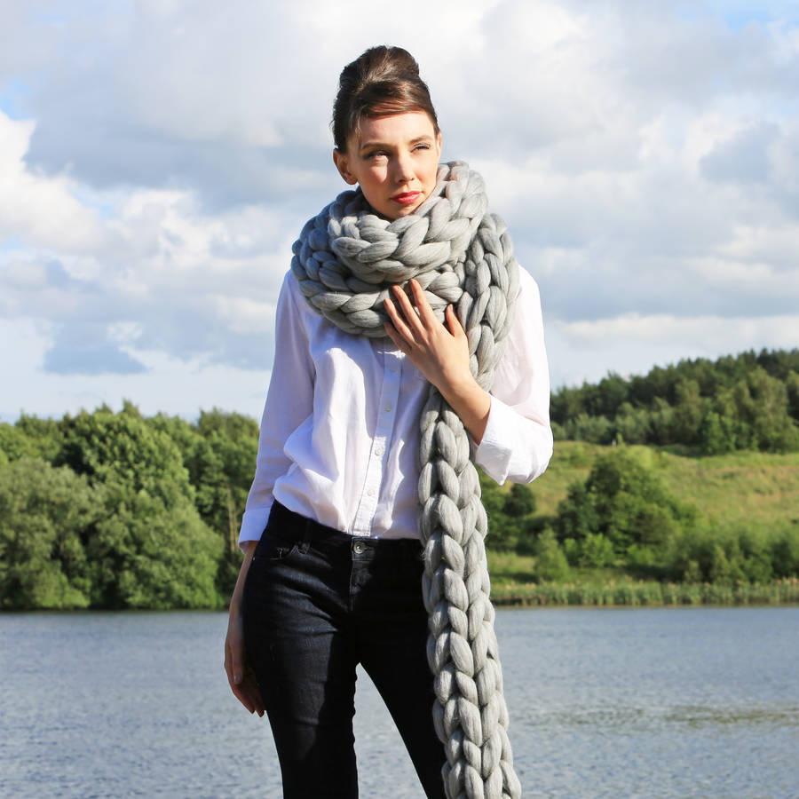 Today, tying the product can be compared with art. The skillful design of the accessory has an important role in creating the image. Designers offer a lot of various ways to wind this item of clothing. A classic scarf with an English elastic yarn of soft yarn is suggested to be worn knotted around your neck.