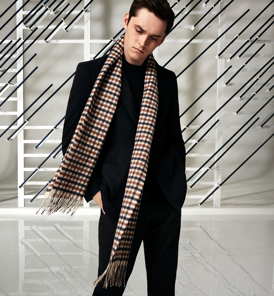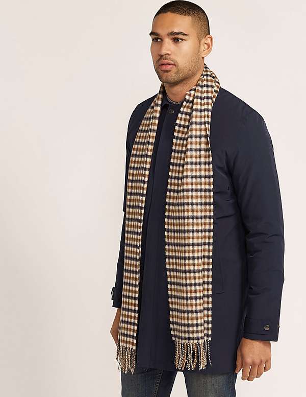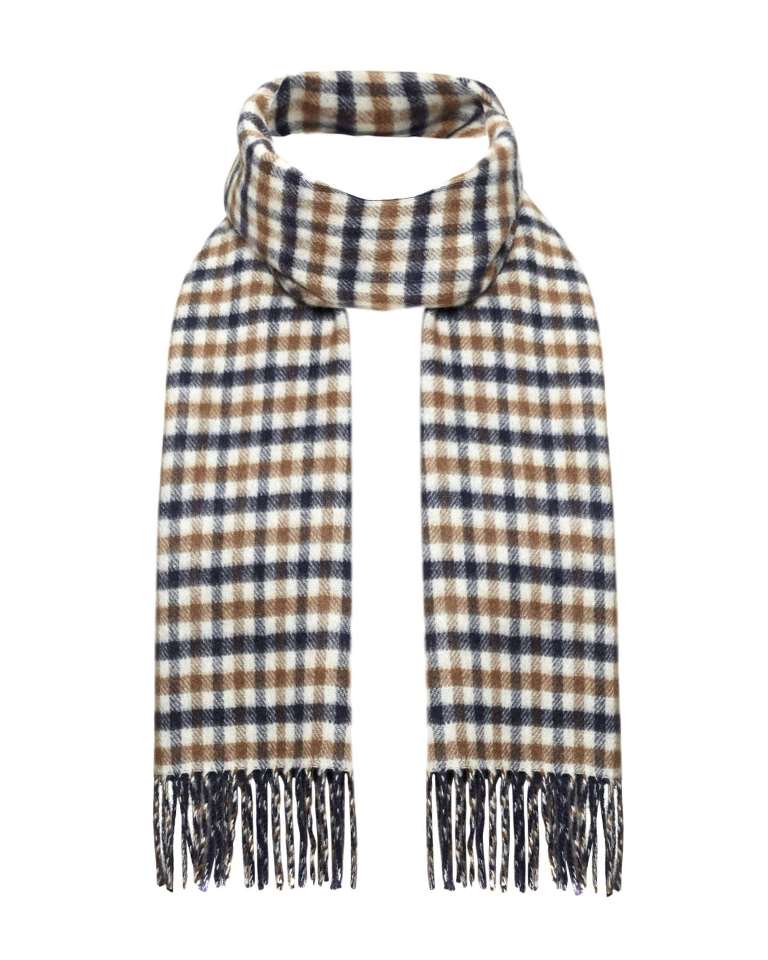 Aquascutum scarf is a classic accessory of a well-known brand, an indispensable attribute of a set of casual style clothing. It goes well with business clothes, giving it a strict English style, is very popular in everyday urban look with an emphasis on comfort and practicality.