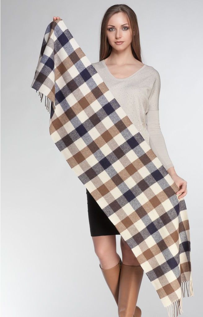 Designers recommend sticking to the rule in which the scarf becomes a stylish accessory that does not outweigh the ensemble, but introduces a special status into it. Corporate checkered print remains a trend, regardless of the years, because the classic exists out of time.