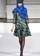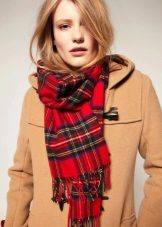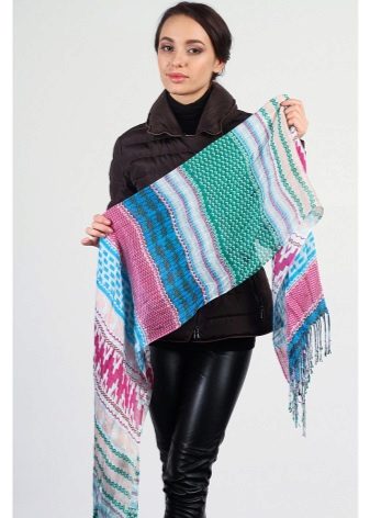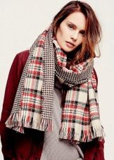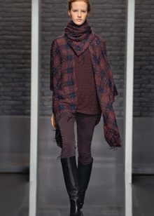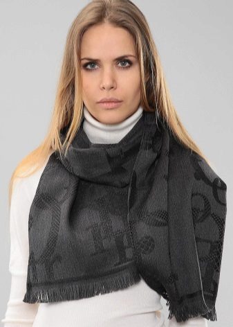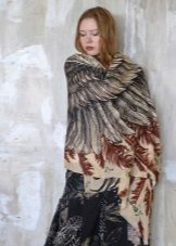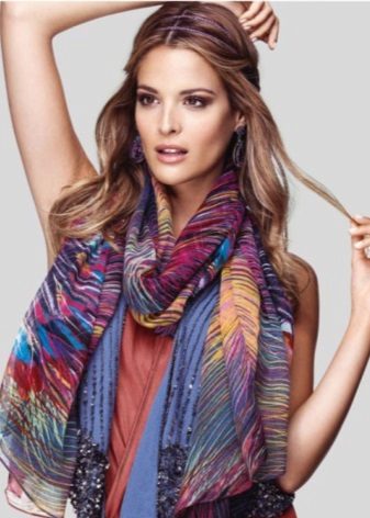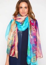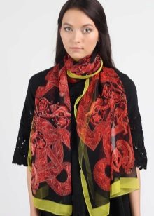 A light scarf can also be used as a tunic over outerwear. The most safe combination will be a bright scarf covering the shoulders of a black monophonic coat.