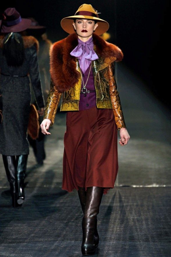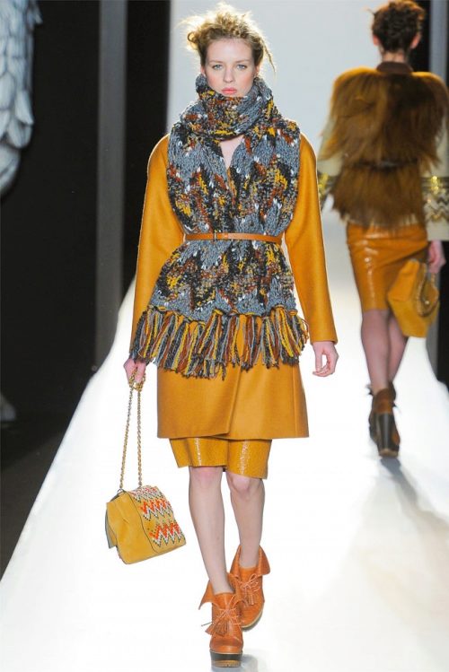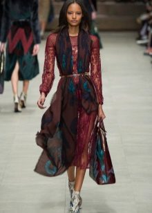 Fashion house Burberry Prorsum offers to wear long scarves under the belt. To do this, just wrap the scarf around the neck, and tie the belt over the loose ends, moreover, one of them should be longer.