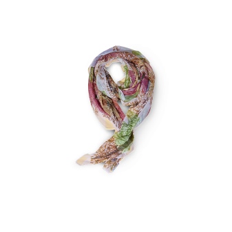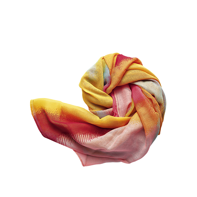 After drawing every detail, it is scanned in high resolution and the colors are set up on the computer. Completing the creation of a masterpiece of hand-painted. In the new season, scarves and stoles with Italian flower motifs will add to the collection.