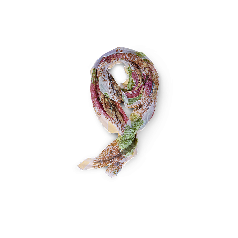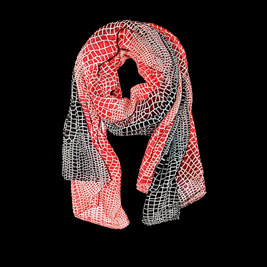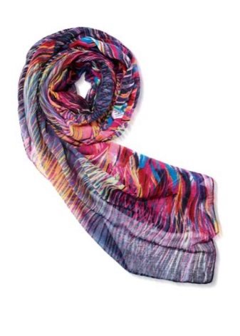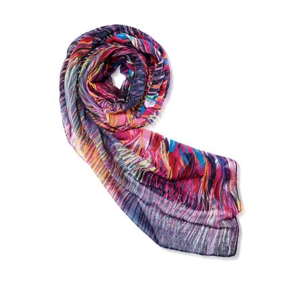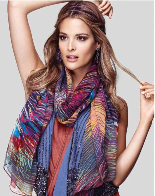 Conquers the scarf model with its pattern "Boho-chic" from Oriflame. Bright colors, gentle light flowing fabric and large size allows using the product not only as a scarf, but also as a tippet.