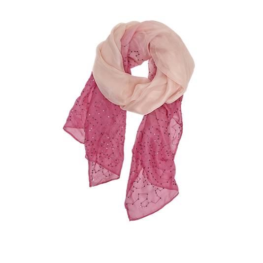 Model "Star dust" made in pink and silver-gray colors, seamlessly converging into each other. Decorates a scarf and gives the mood of the holiday sparkling thread.