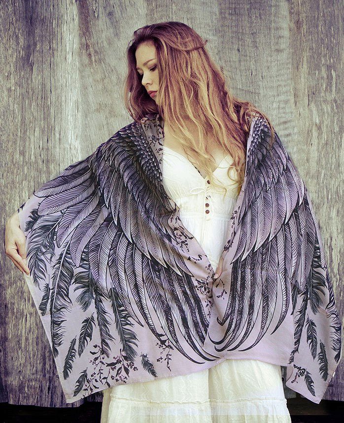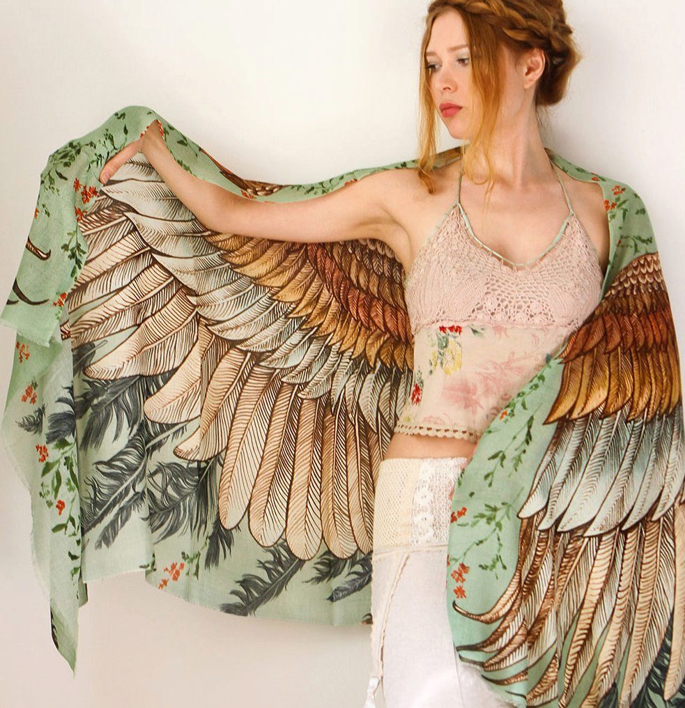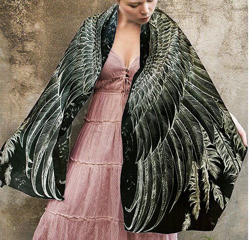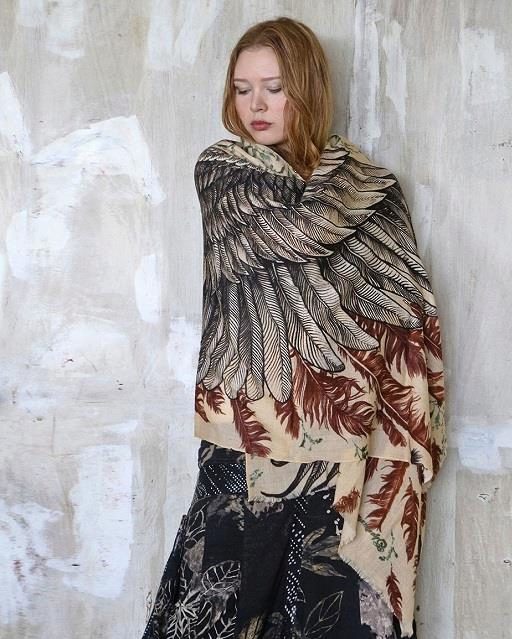 Original scarves and stoles from Australia with the ornament of the wings is the creator of the brand Shovava Rosa Khamitova. Founded in 2011, the brand is the personification of originality, colors and colors, and its design is created by Rosa herself with the help of ink, brush and watercolors on a special paper called vellum.
