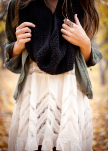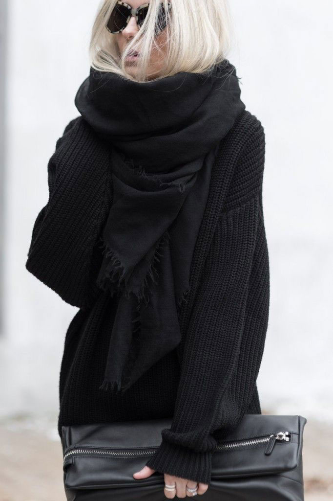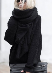 - In the cold season volumetric black models will be useful to you. Knitted scarves made of wool and mohair will protect from the winter cold and dank autumn rains, as well as serve as a wonderful decoration that can distinguish you from other people.