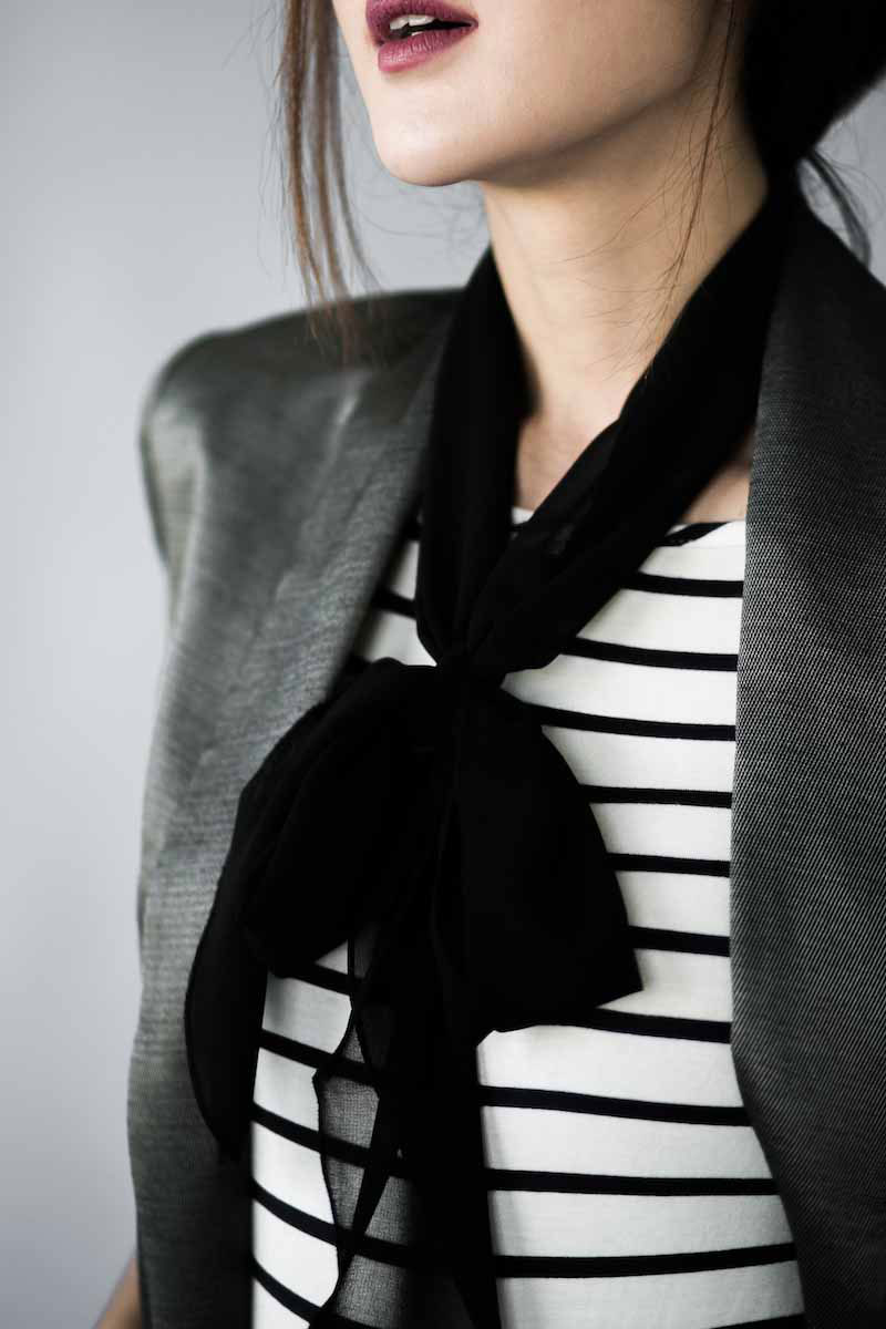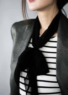 - For a classic office style, a silk scarf, tied in a bow, is required.