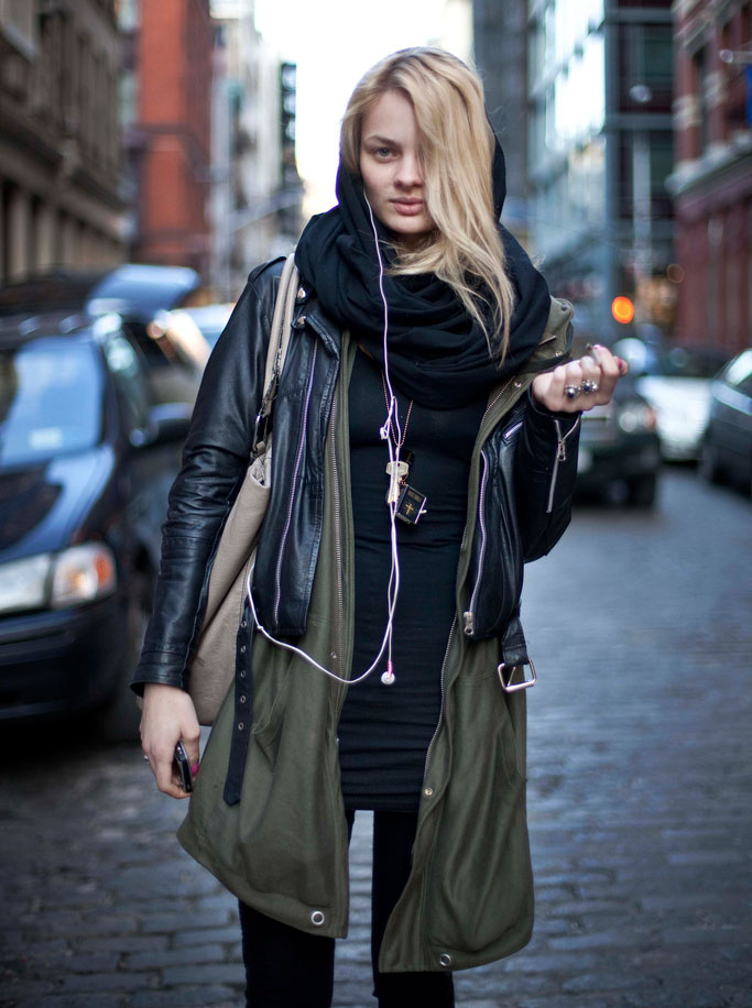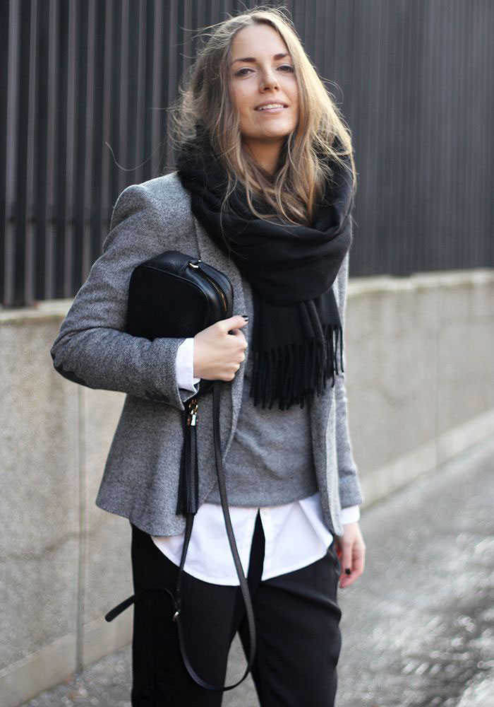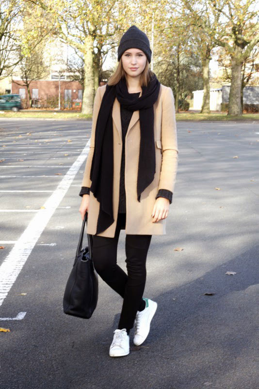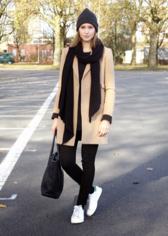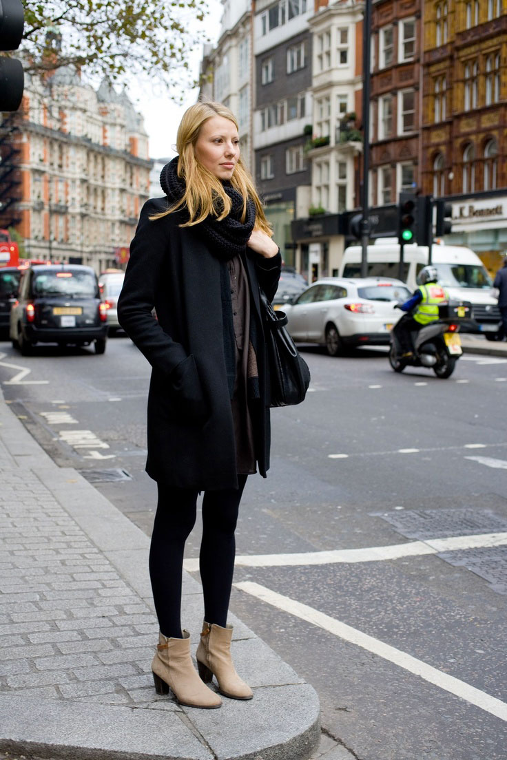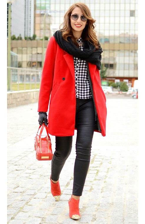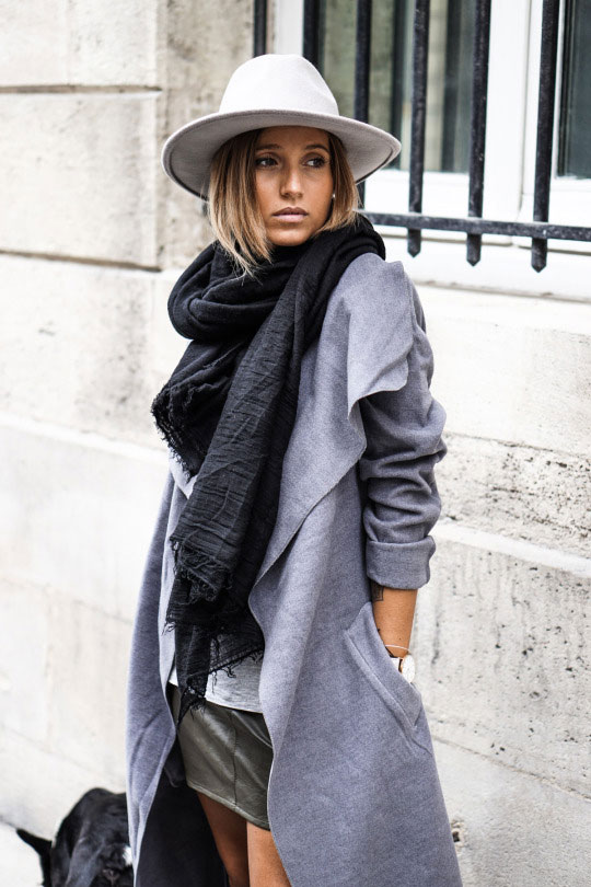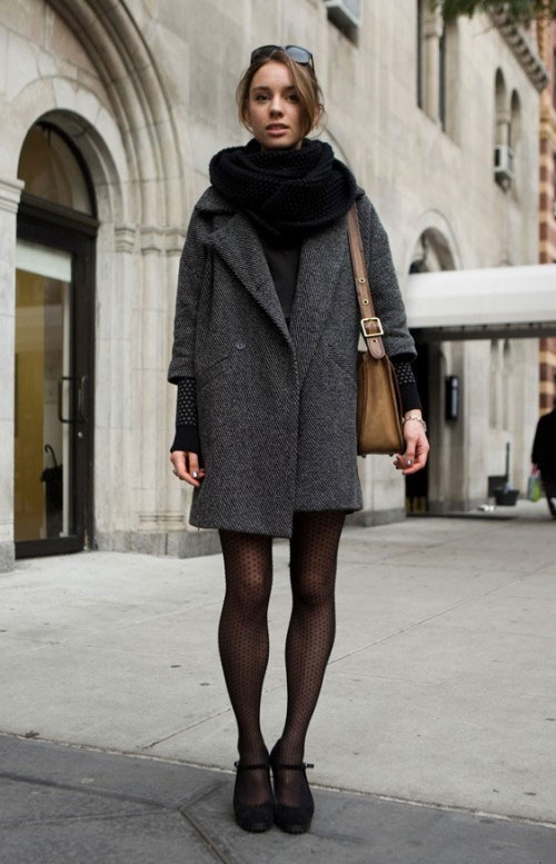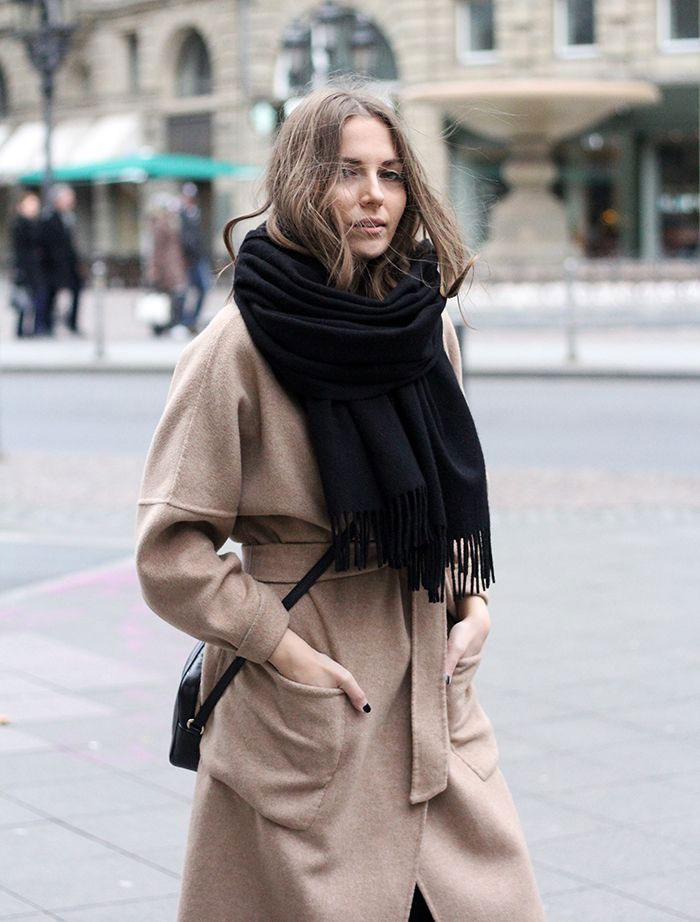 - A celadon coat definitely needs a black scarf! Get a spectacular bow, expressing individuality.