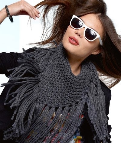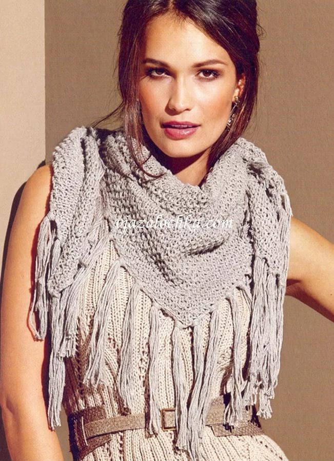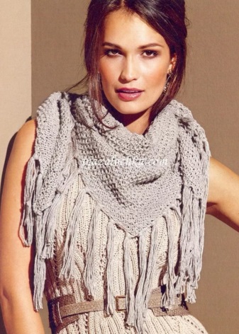 Designers have focused on the finishing of the scarf. The fringe and original bells around the edges of the accessory make it very stylish and elegant.