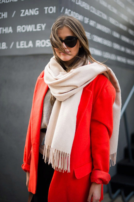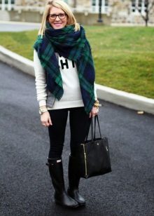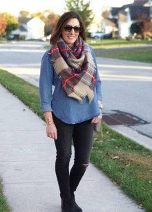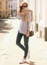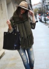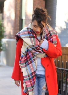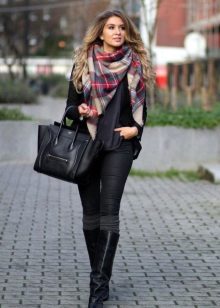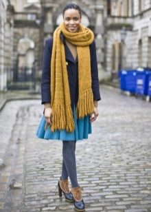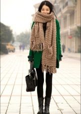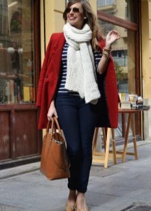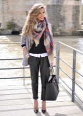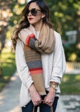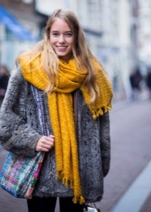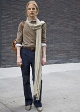- In the case when the image already has a bright accent, choose a scarf in a soothing color. Otherwise, you risk looking too motley. Bulk scarves are unlikely to be appropriate.