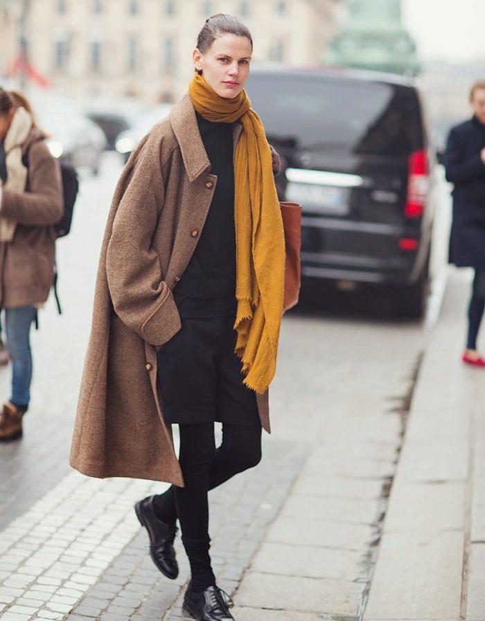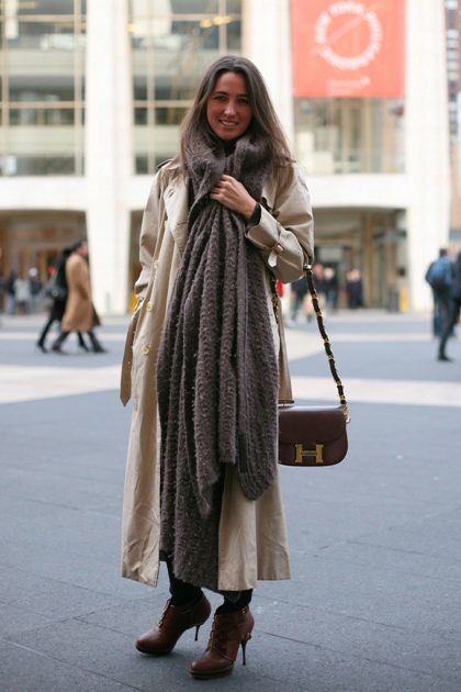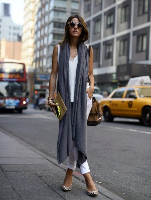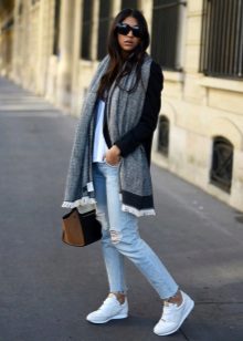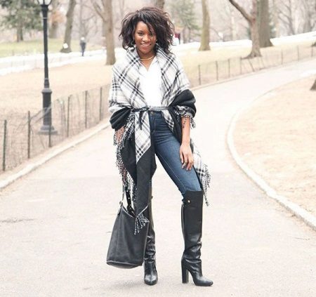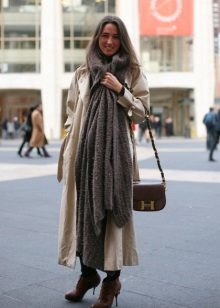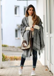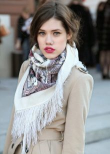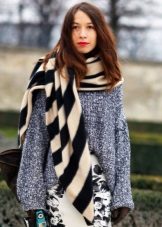 This method is considered extremely elegant. He admits wearing a shawl over a coat, raincoat, or even a dress. In winter, it is especially relevant because it allows you to keep warm.