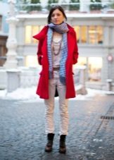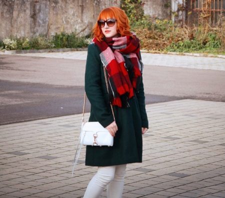 - A scarf, especially if it is of bright color, should not be combined with other perceptible accessories. This will make the image overwhelmed and ridiculous.