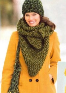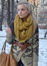 You can simply wear a scarf around your neck and make a knot in front. You can straighten the snud and throw it on his shoulders. The wide model can be worn as a vest. To do this, skip the hands inside the ring and straighten the back scarf.