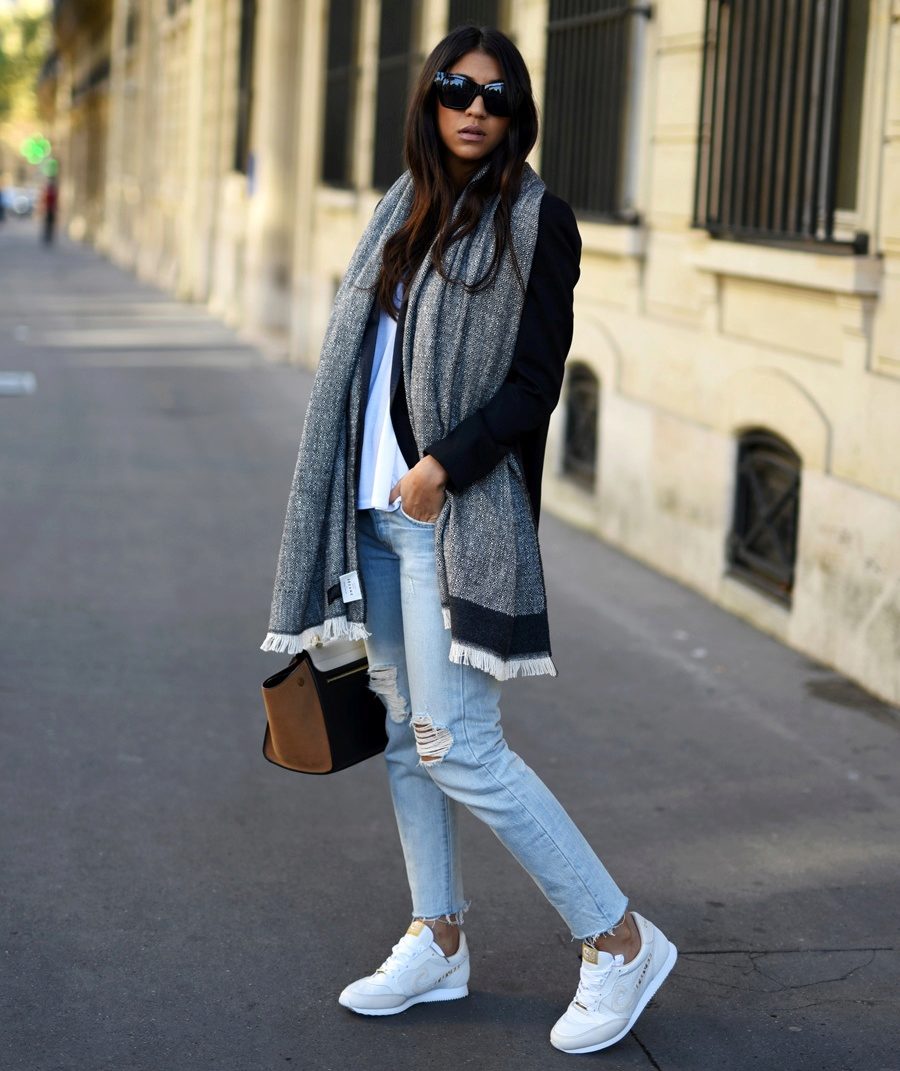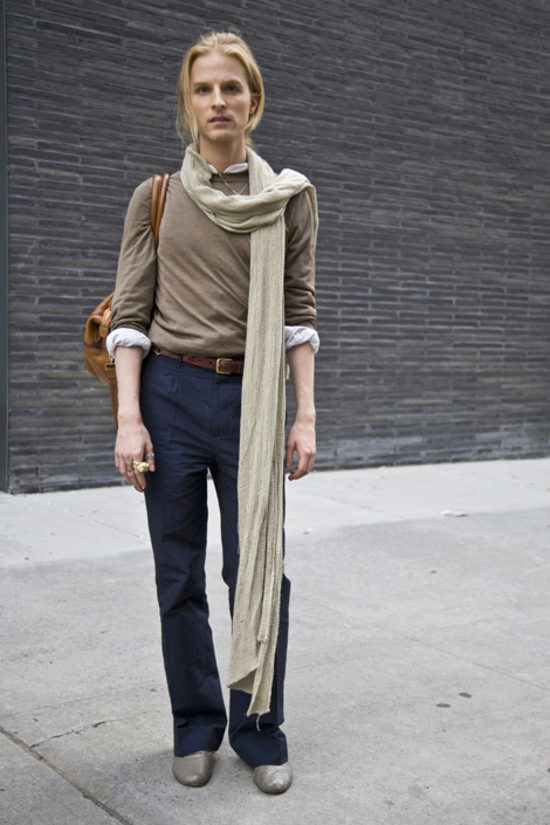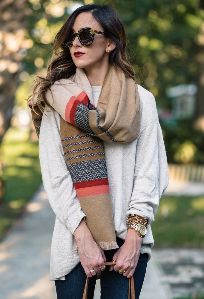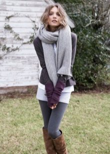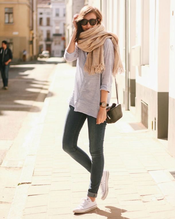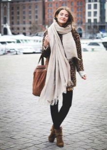 - For a neutral look, made in calm colors, choose a bright, noticeable scarf. It will give the appearance of fresh paint.