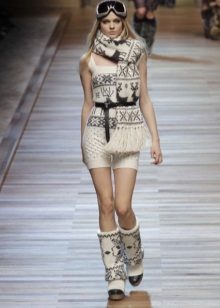 This is quite an interesting way. First, you need to determine its middle. Then you need to throw the scarf back so that both its ends are in front. After that, you must carefully wear a belt scarf. It is allowed to wear a scarf in such a way, combining it with turtlenecks or with a coat.