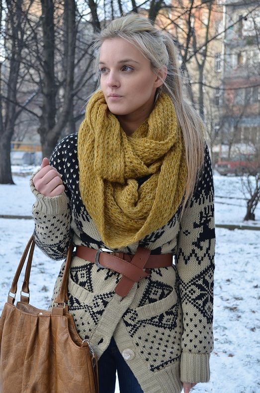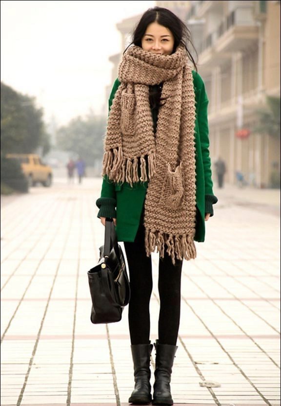 - For a more original look, you can wear several scarves at the same time. An interesting option when these scarves are of different colors. Do not be afraid to experiment, use new unusual ways of tying scarves and you will always look fashionable and stylish.