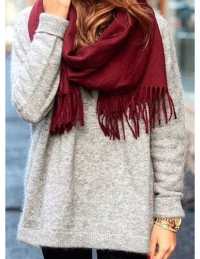 It is much easier to wear a round wool scarf, as it does not need any specific tie. It is enough to twist it in such a way that it forms a figure-eight, then folding it in half, pushing the head into the hole. All ingenious is simple!
