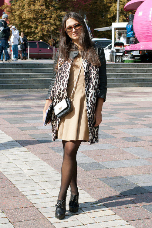 The rest of the details also play an important role, so you should stop the choice on black shoe with a small heel and a leather bag in a shape resembling a bag.