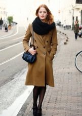 With a classic coat, you can wear any Lt. It can be monotonously bright, trimmed with beads or buttons, with a pattern ... Also, a short scarf made of artificial or natural fur looks good with this coat, but only if there is no fur trim on the coat.