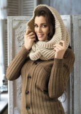 - In the case of a jacket with a hood, a snood is worn under it. You can also wear snood under the jacket, slightly opening the collar so that the scarf can be seen.