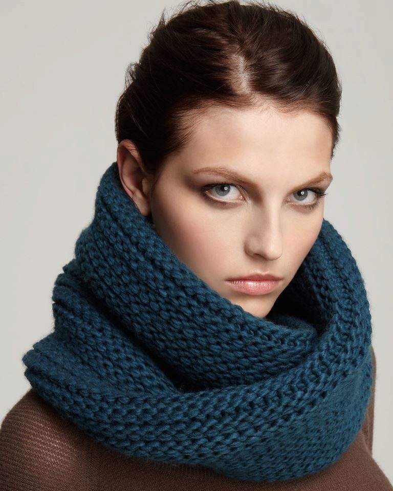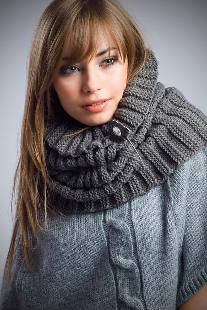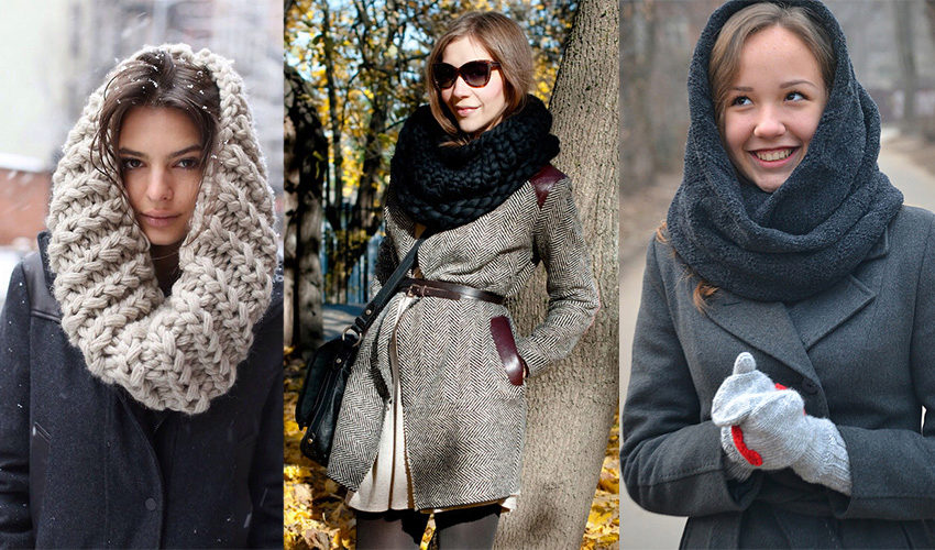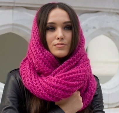 And ladies with lush breasts and broad shoulders may be advised to choose a snood from thinner fabrics and wear it hanging freely to visually lengthen the entire silhouette.