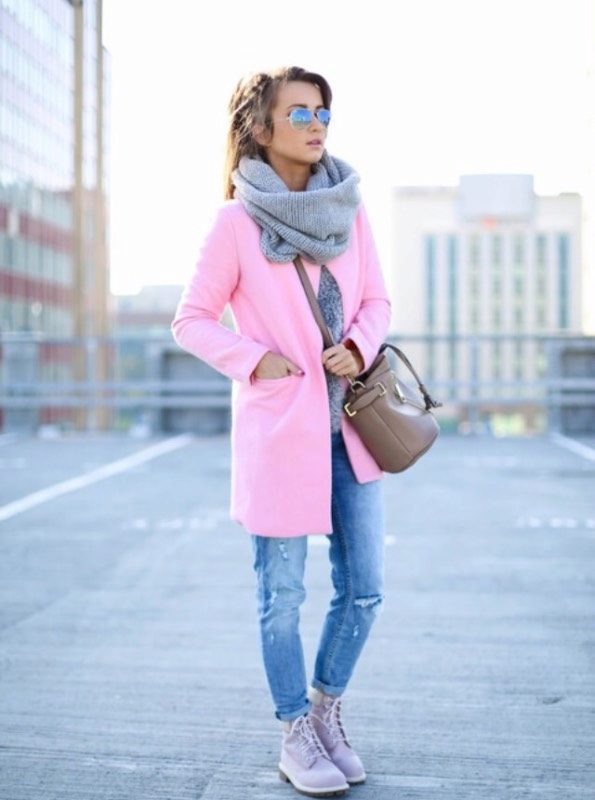 For all your favorite cashmere coats or drape coats, scarves of medium length and soft shades are appropriate. 2-3 tones different from the color of the coat. Designers recommend creating elegant images with a coat. The scarf with voluminous braids and patterns will become the most fashionable accessory in your wardrobe.