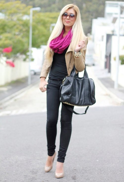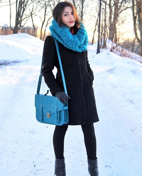 - Choosing a snood to your jacket, pay attention to the colors. Monochromatic scarves will suit monochromatic jackets, and vice versa, a plain scarf will look more harmonious on a bright jacket with a color print.