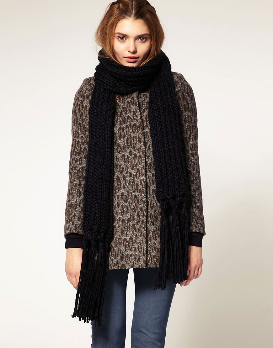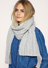 Long lick can be wrapped around the neck several times. The model in this case depends on the season: the colder, the greater the thickness of the threads and the larger the pattern. Wide square or rectangular knitted scarf is ideal for tying a triangle. To do this, make a scarf front angle, leading the ends back. Then, under the product, they are tied in a knot or crossed again, tied to the side. The square version is performed in a similar way, only at first it folds diagonally. The best combination of accessory will be a coat or raincoat.