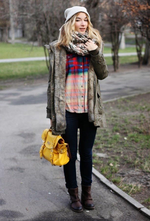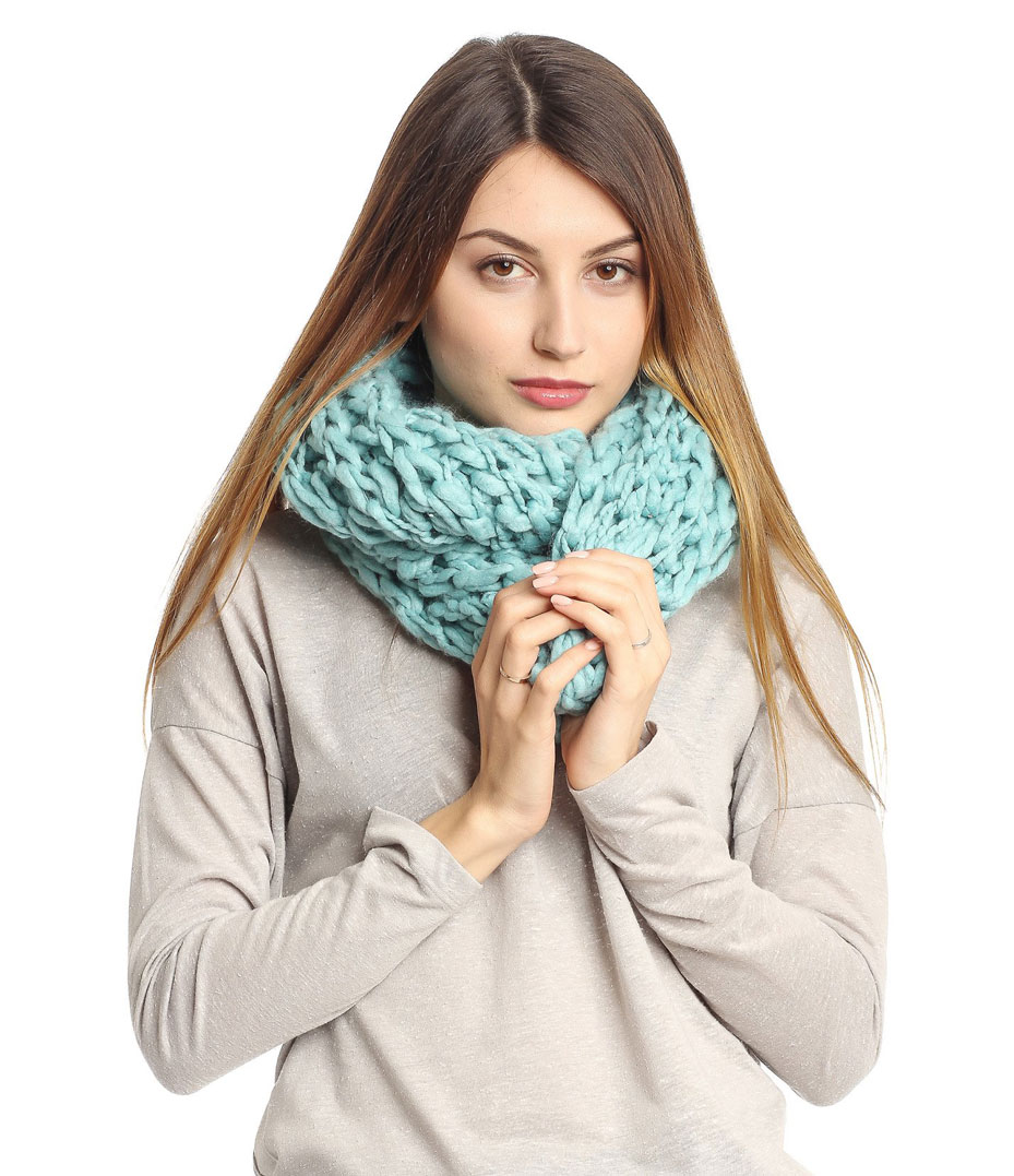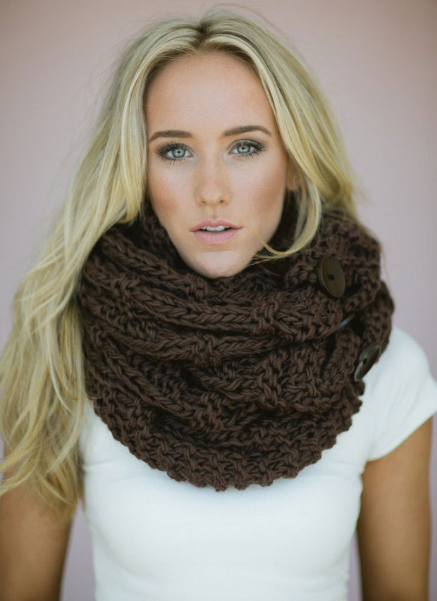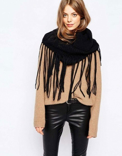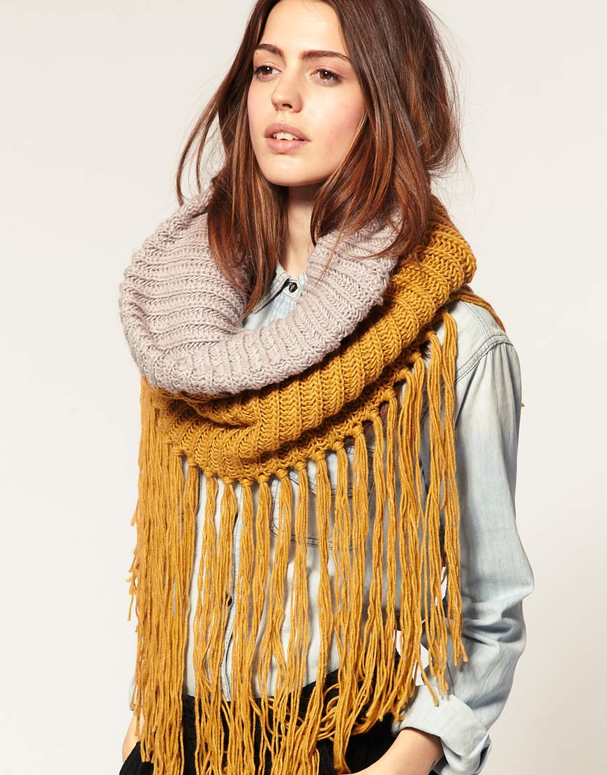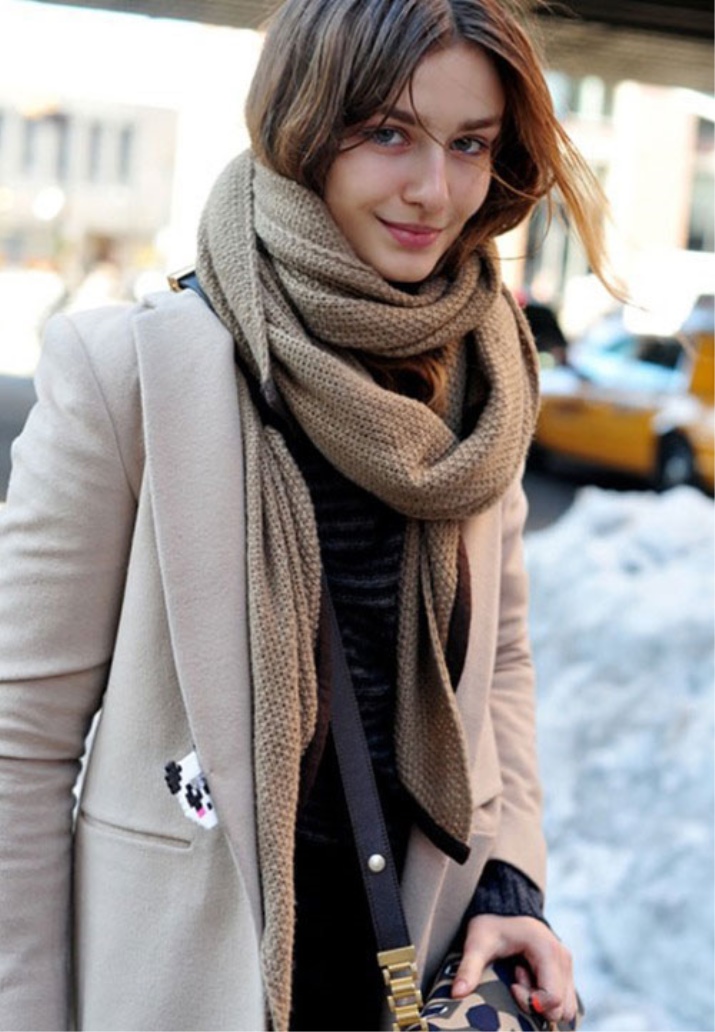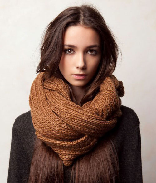 Sometimes women of fashion go on bold experiments, creating their own style with just two contrasting scarves. Usually knitted version is selected based on preferences for certain clothes. Some models allow you to wear the product without tying. In this simplest case, the ends are thrown over the neck and straightened.